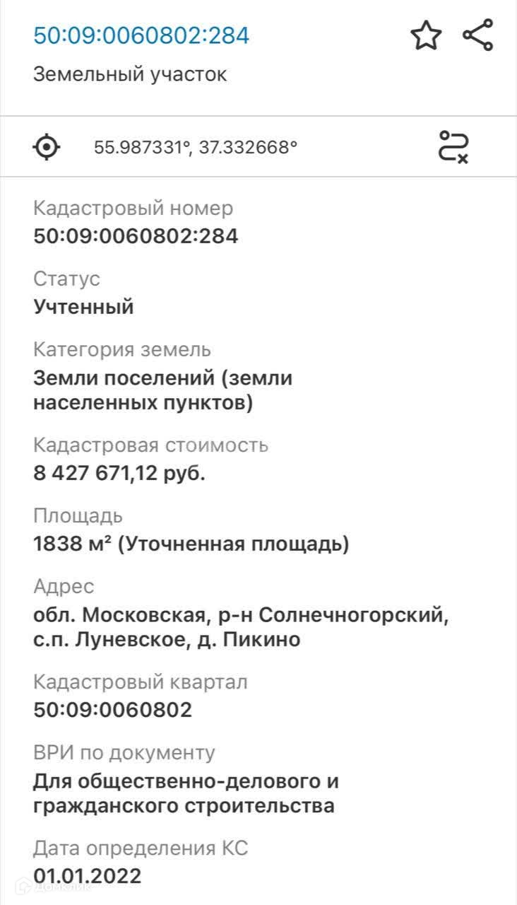 Есть еще один участок рядом -42,5 с.. Номер в базе: 10230248. Район: Пикино д..