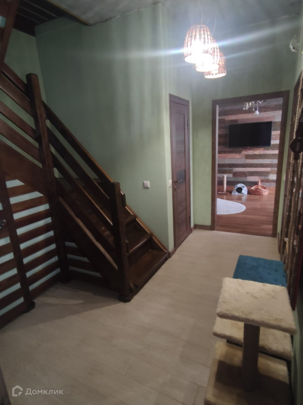 Установлен двухконтурный газовый котёл, как на отопление так и на горячую воду. Сан. узел выложен кафелем, просторная гостиная, выделено место хранения под лестничным приёмам.
