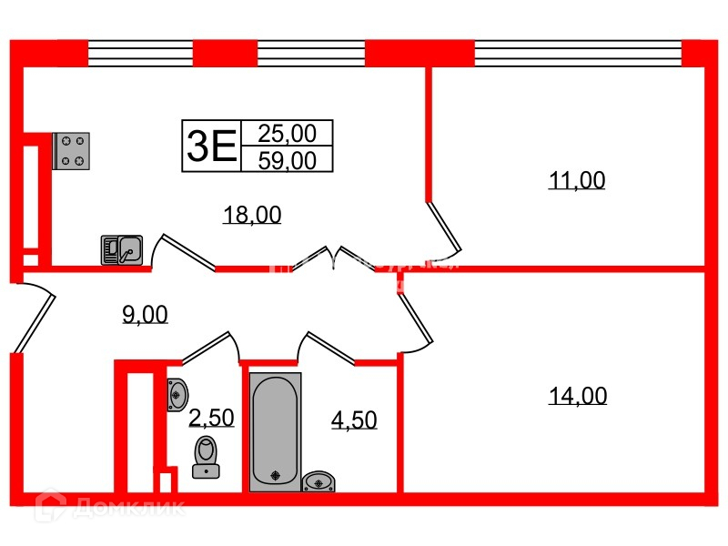 Раздельный санузел (Ванная 4,5м.кв. и туалет 2,5м.кв.)