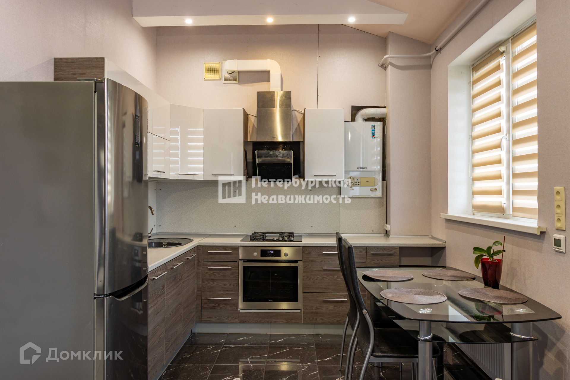 Регулируемый газовый котёл для отопления квартиры и горячей воды, у нас не отключают отопление, когда на улице ещё холодно. Установлена сплит-система.