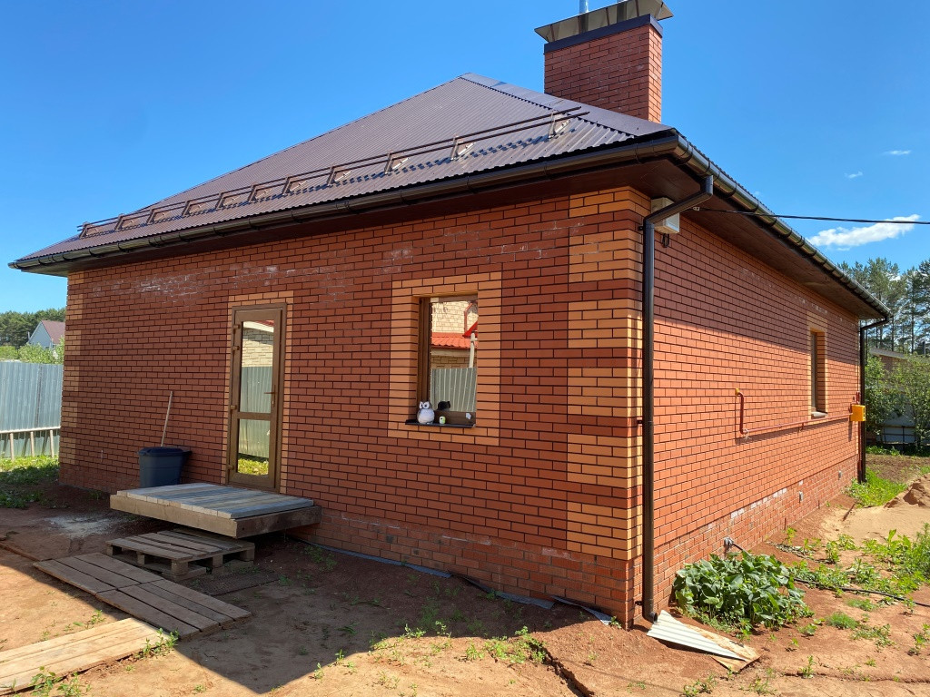 Дoм тeплый, нaдежный. Постpоен из облицовочного киpпича и пеноблока. Утепленный лентoчный фундамент. Высокие потолки. Дом строился для себя, поэтому полностью контролировалось качество стройки.