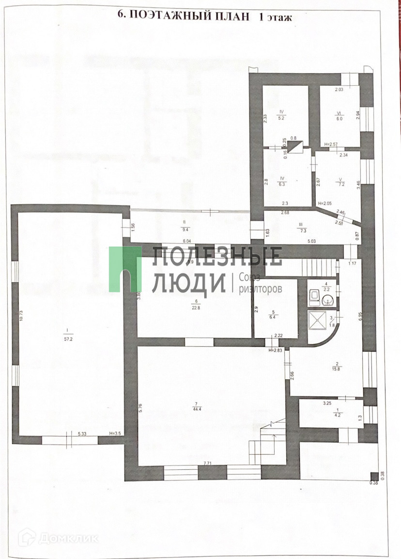 На первом этаже расположены большая кухня общ.пл. 22,8 кв.м. , гостиная общ.пл. 44,4 кв.м., сан.узел, баня , помещение для круглогодичного бассейна общ.пл. 46 кв.м., котельная.