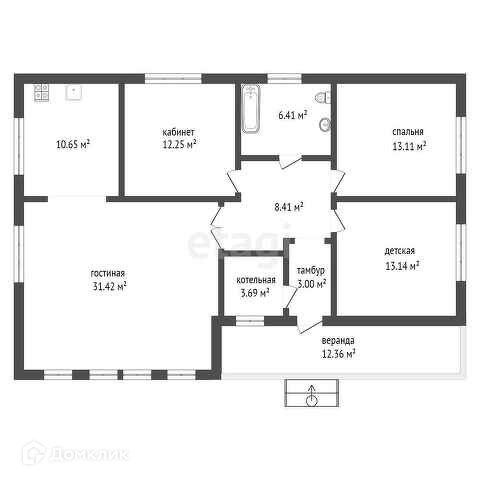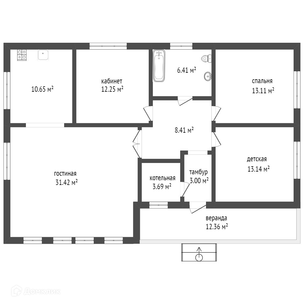 1 этаж: Комната 15 кв.м, кухня-гостиная 30 кв.м, санузел, отапливаемый зимний сад 30 вк.м.