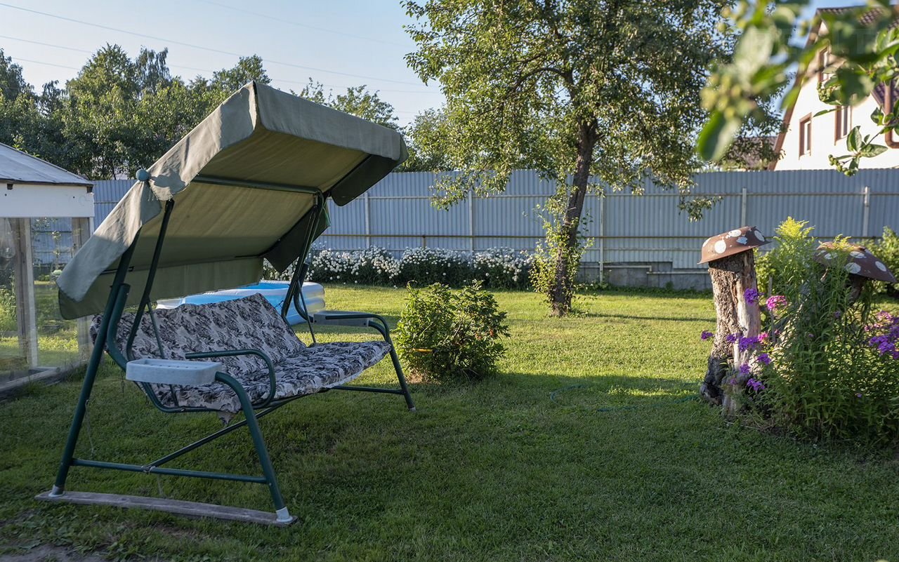 На участке много красивых цветов ( роз, гортензий), цветущий и плодоносящий сад и огород(виноград, вишня, яблоня, груша, слива, сортовая крупная малина, сортовая сладкая клубника, смородина, и другие кустарники…), зона под картофель, томаты, огурцы, кабачки, лук и другую зелень. Ухоженная зона отдыха с ровным газоном.