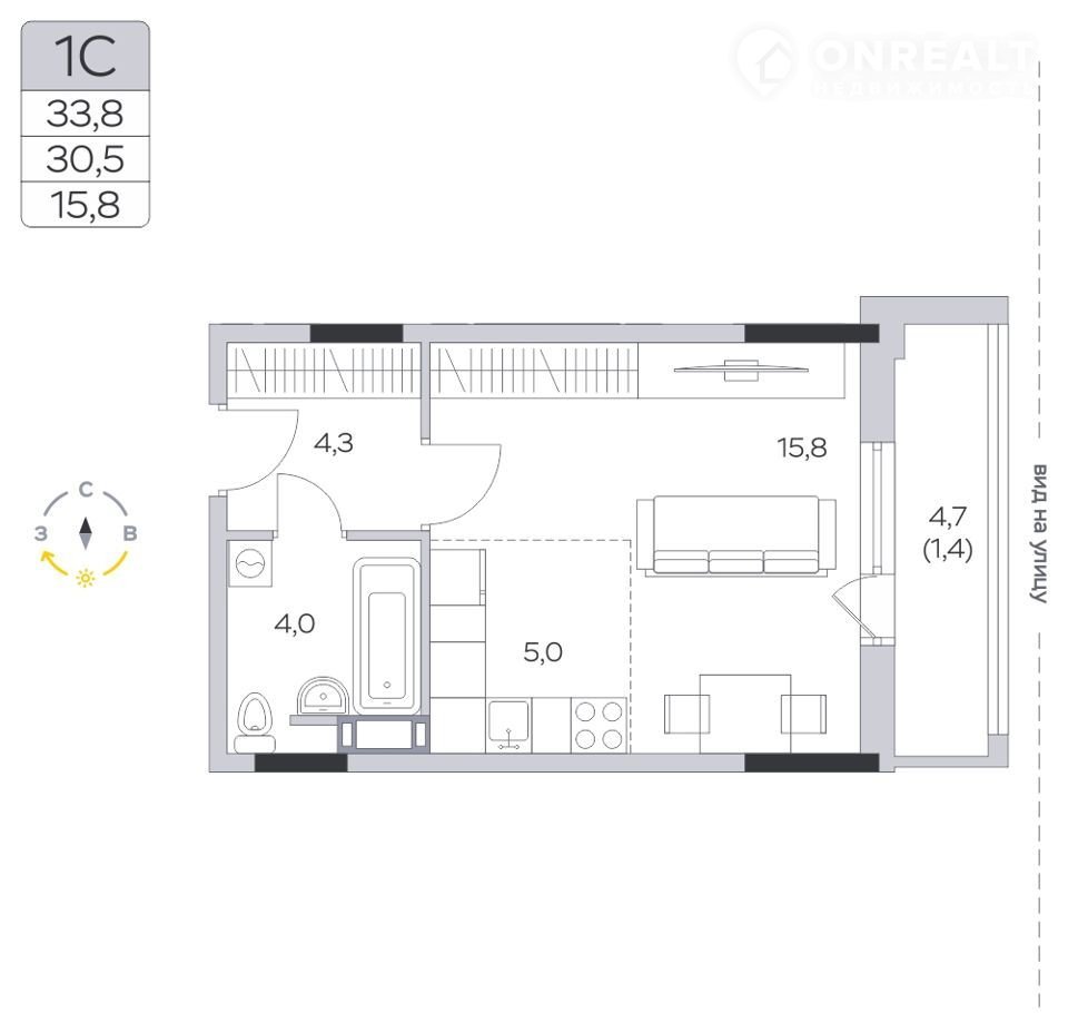 Общая площадь 30.4 м2
