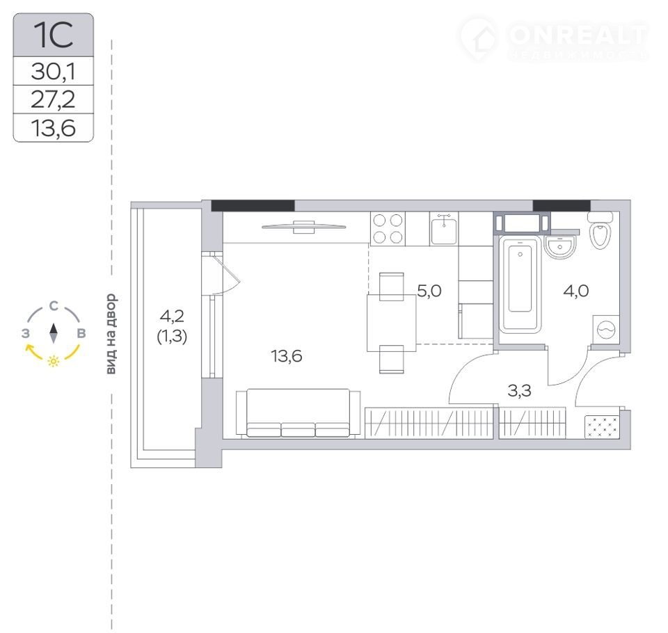 Общая площадь 27.4 м2