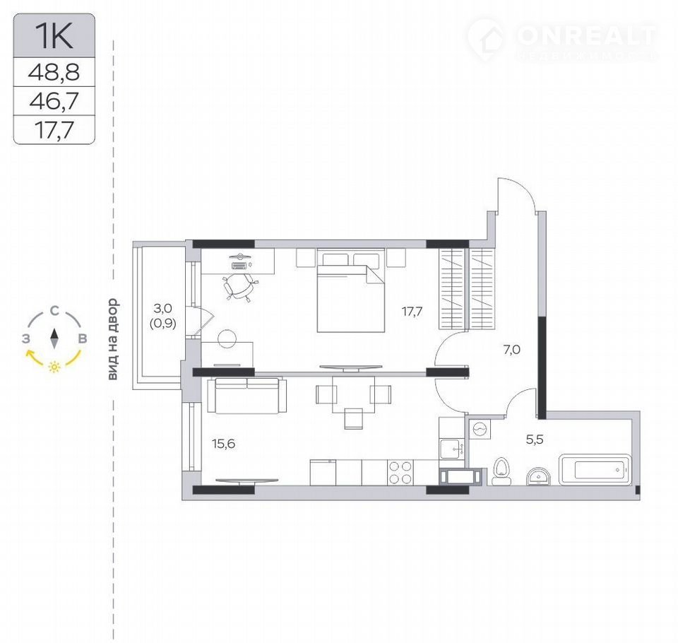 Общая площадь 46.7 м2