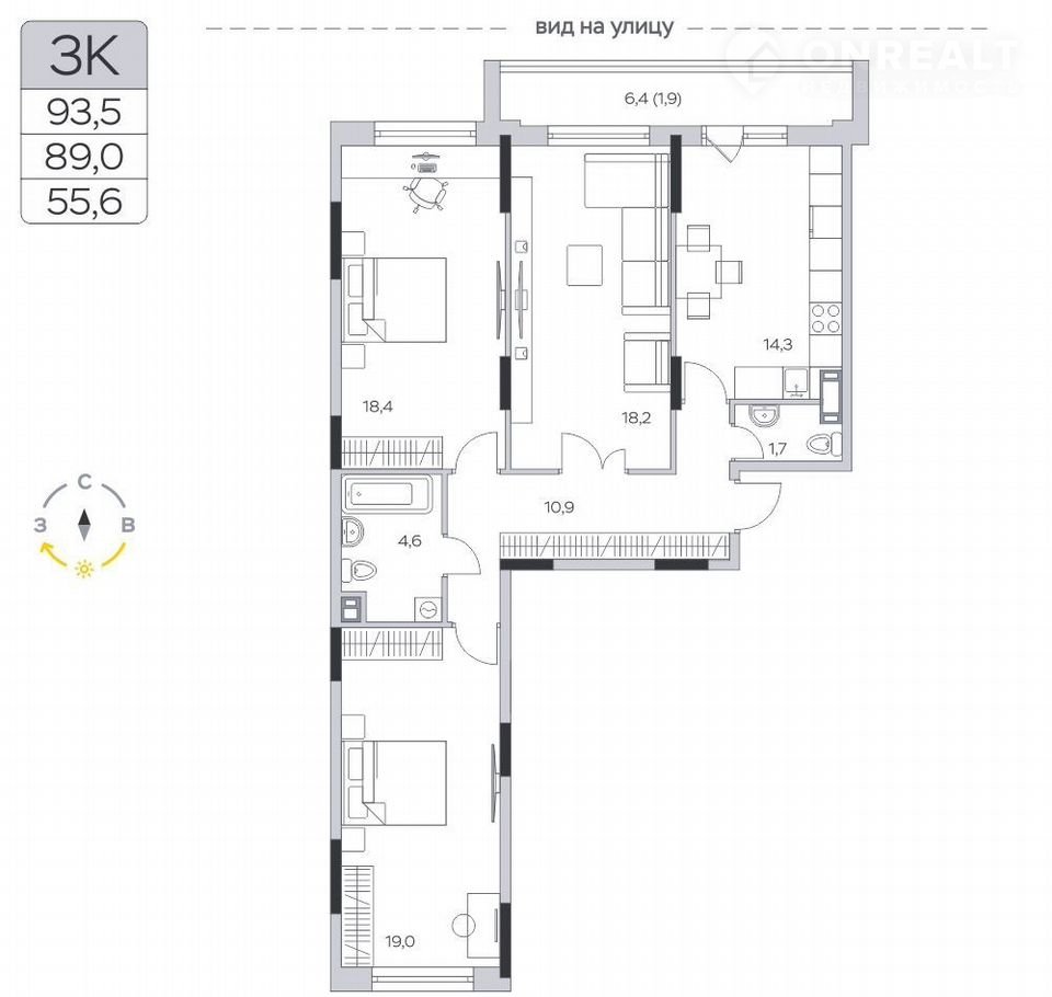 Общая площадь 89 м2