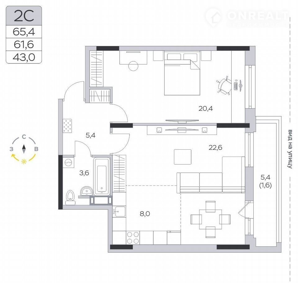 Общая площадь 61.6 м2