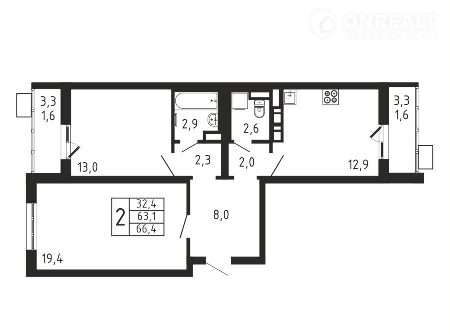 Общая площадь 66.4 м2