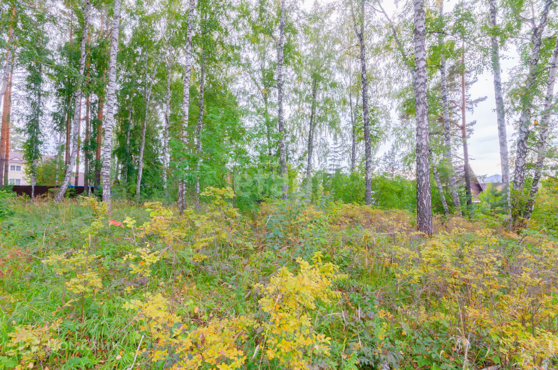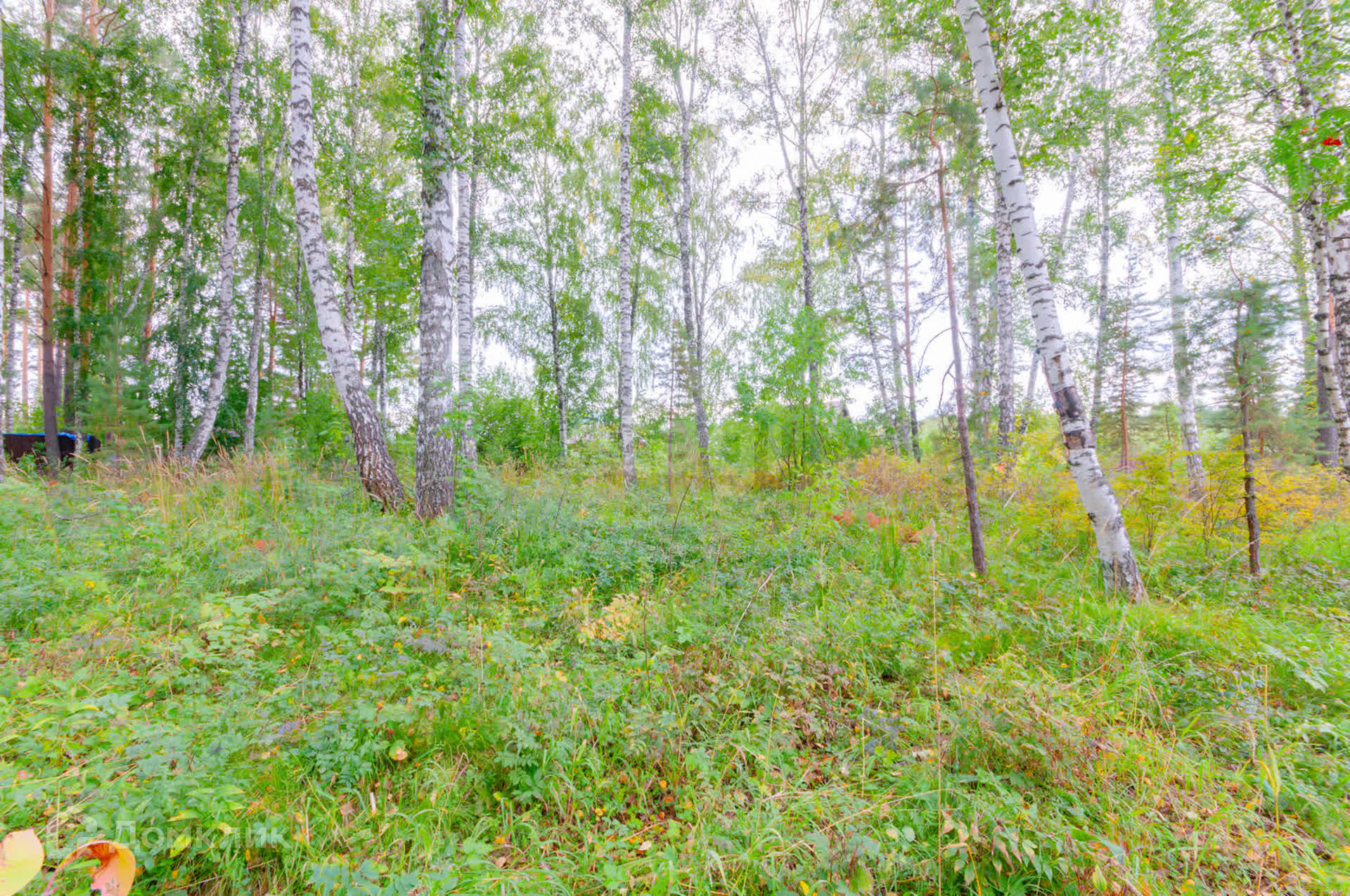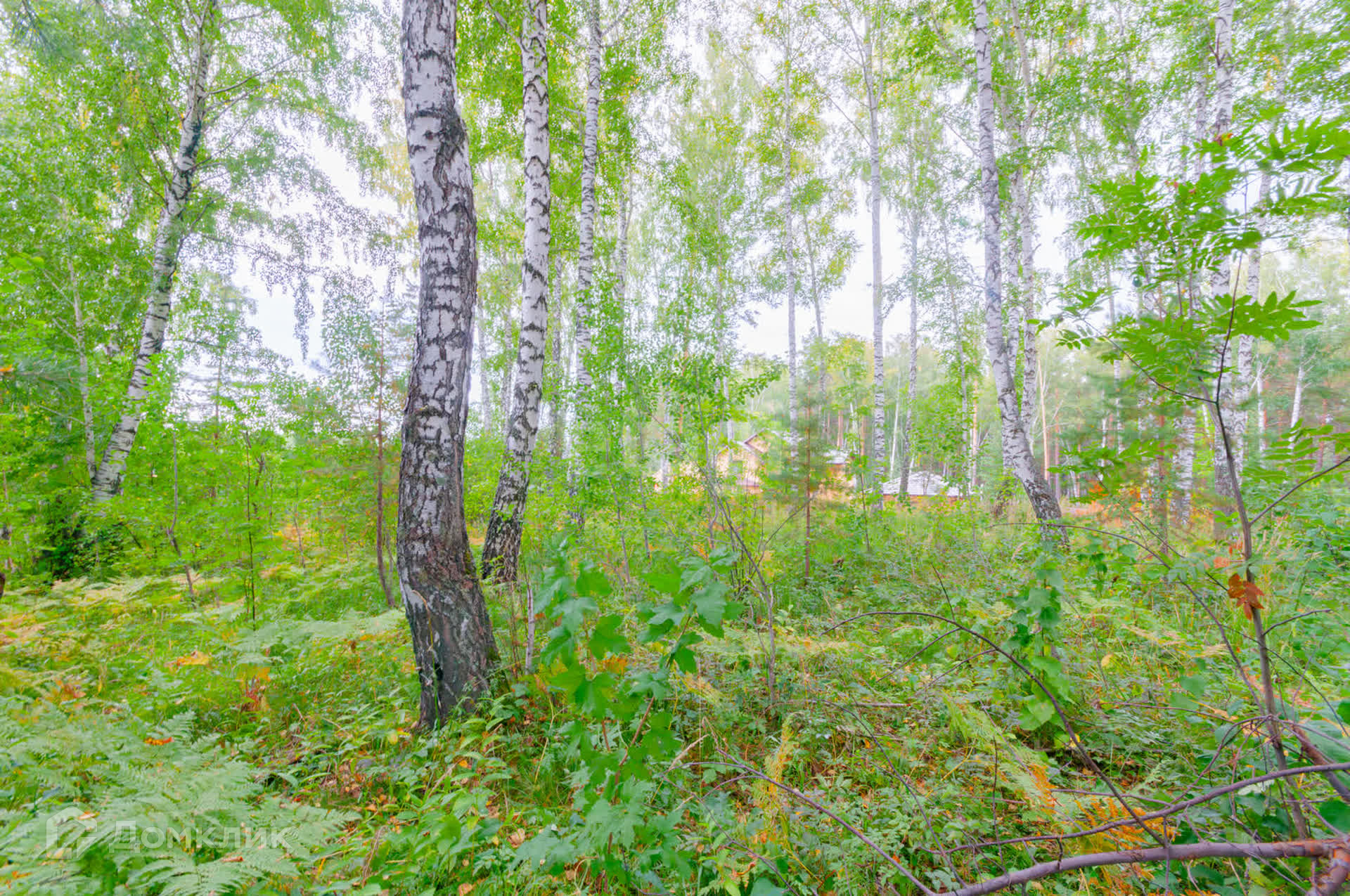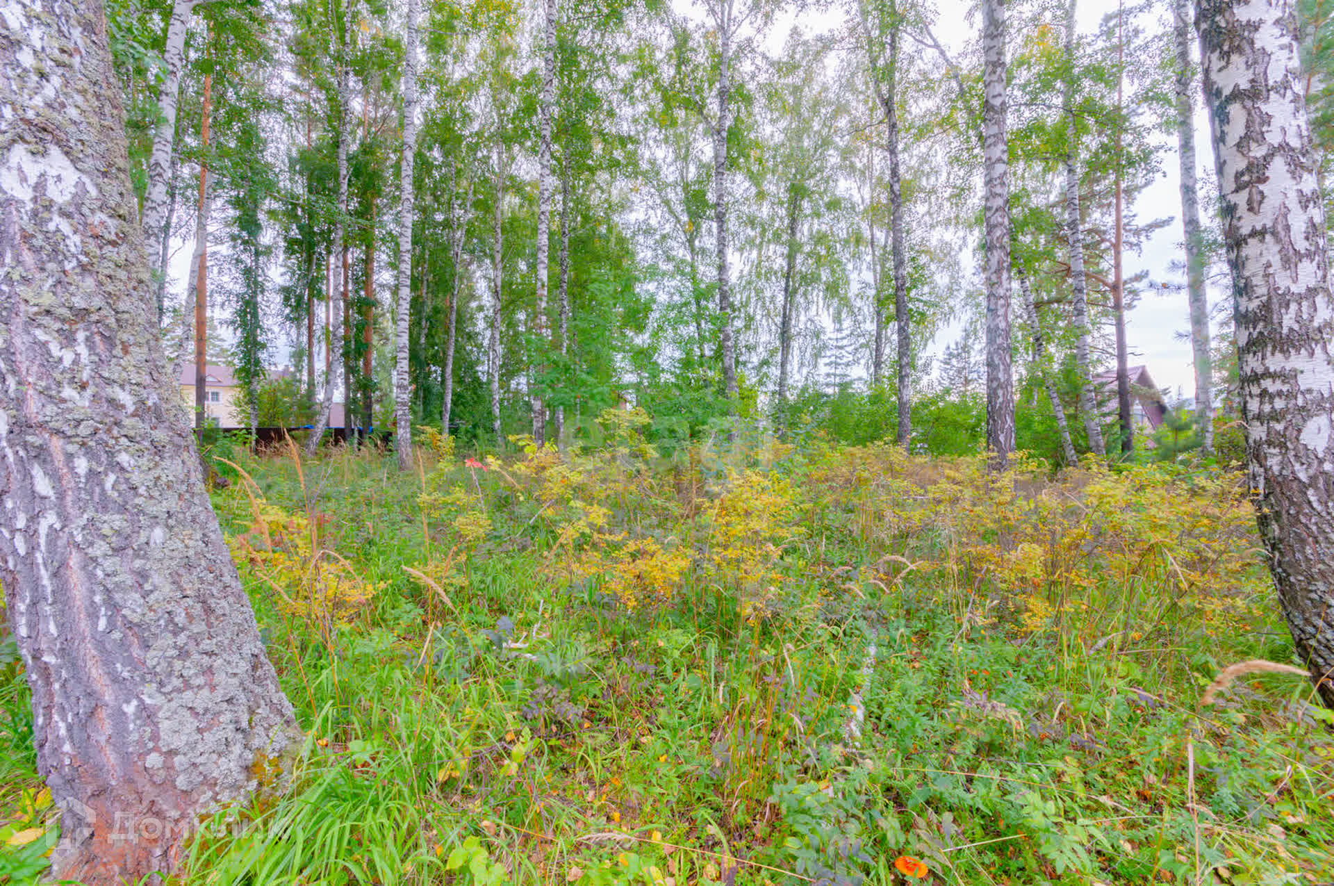 На участке береза и сосна. Рядом сосновый бор.