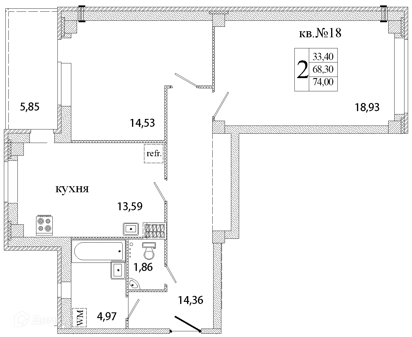 Общая площадь 74 м2
