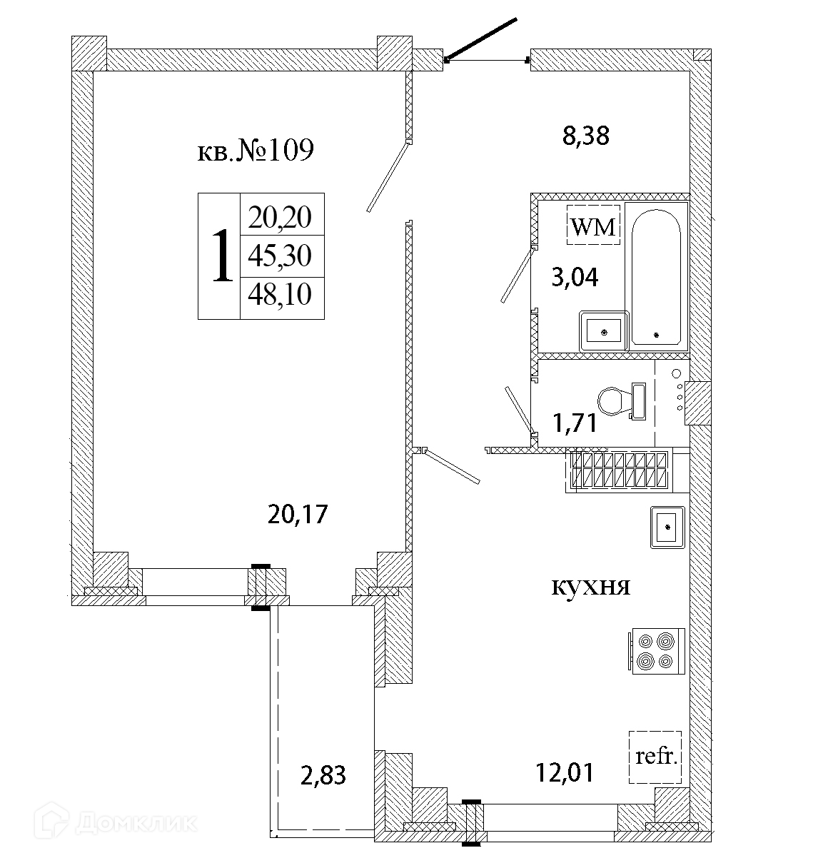Общая площадь 47.9 м2
