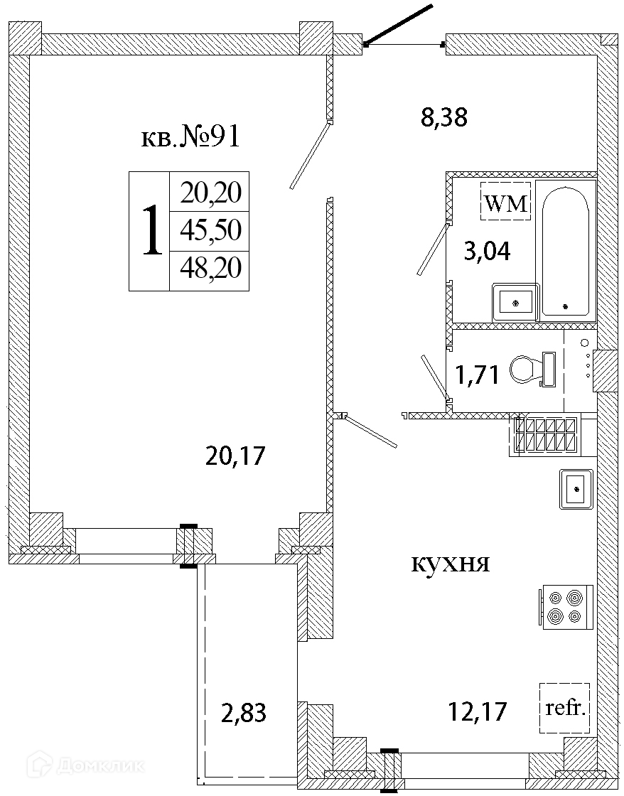 Площадь кухни 12.17 м2