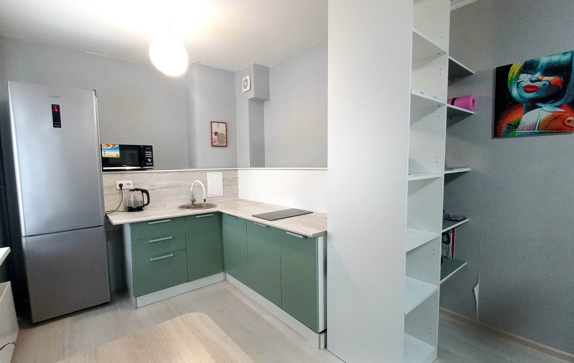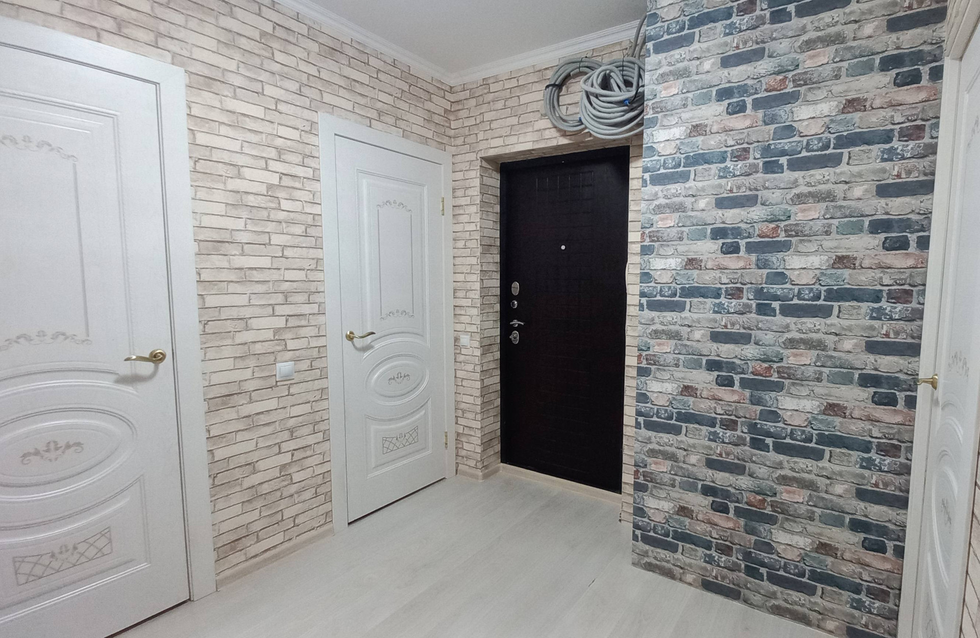 Ремонт выполнен в эклектичном стиле, сочетает в себе элементы сканди и лофта.