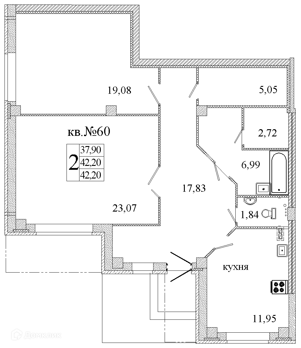 Площадь кухни 11.95 м2