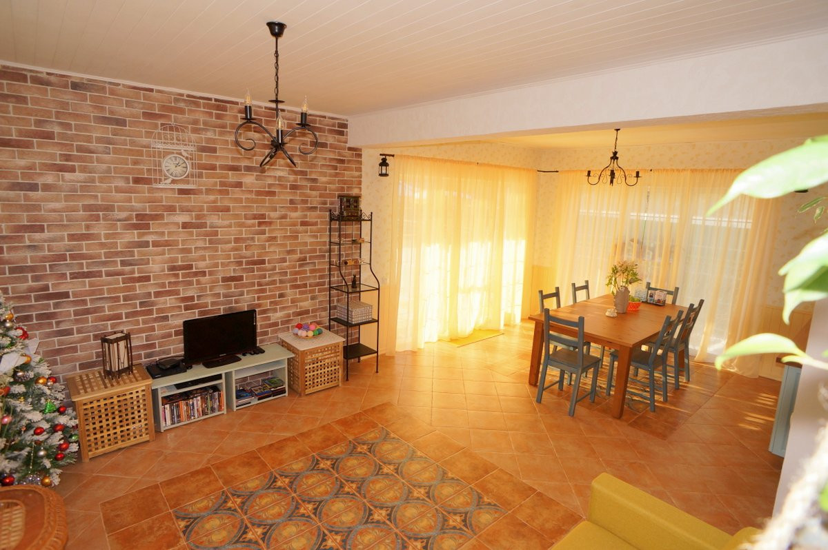Дом продается вместе со всей встроенной мебелью, кухней и всей встроенной бытовой техникой (стиральная машина 60 см, посудомойка 60 см, плита и духовка, встроенный холодильник и тд).