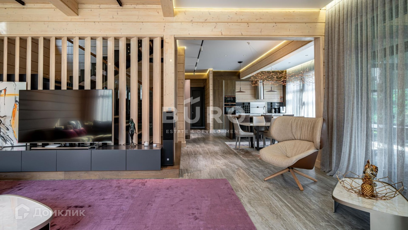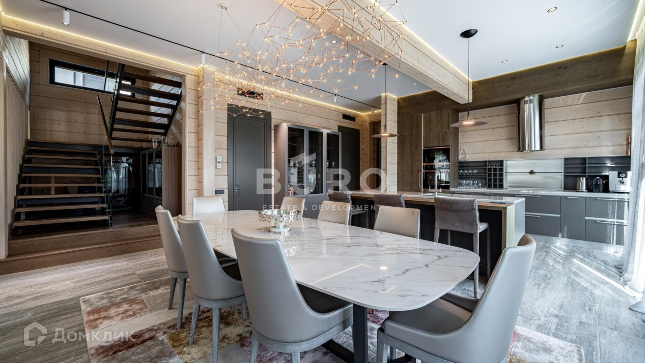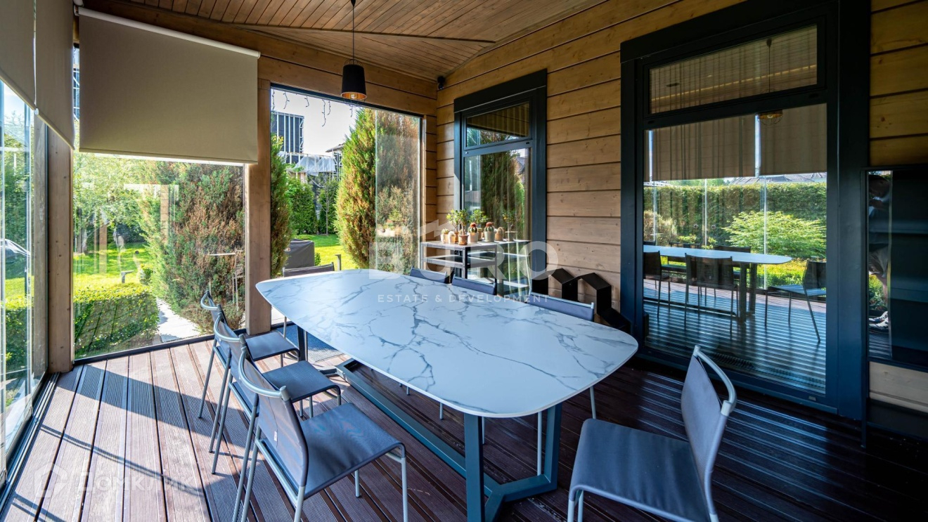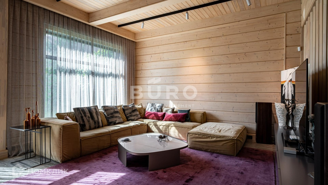 Дом построен по индивидуальному проекту из высококачественного клееного бруса (сечением 210х270 мм.) в 1-м квартале коттеджного поселка, в самом тихом и удаленном от трасс месте. Современный интерьер укомплектован стильной мебелью и освещением от премиальных фирм "B&B Italia", "Bonaldo", "Cattelan Italia", "Axo light" и "Foscarini". Элитная бытовая техника в доме представлена "Kuppersbusch".