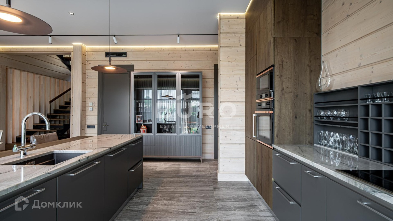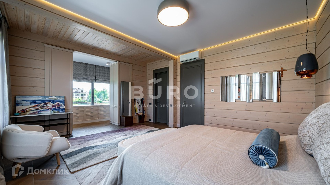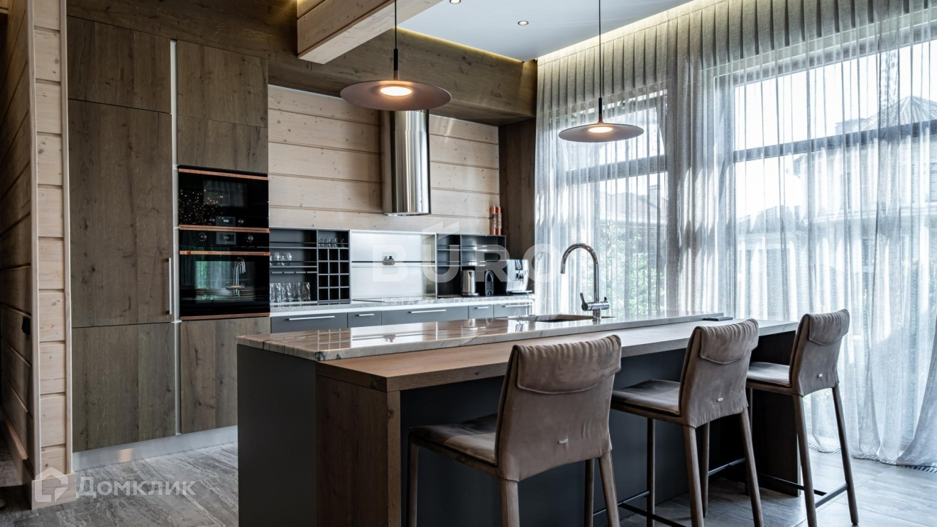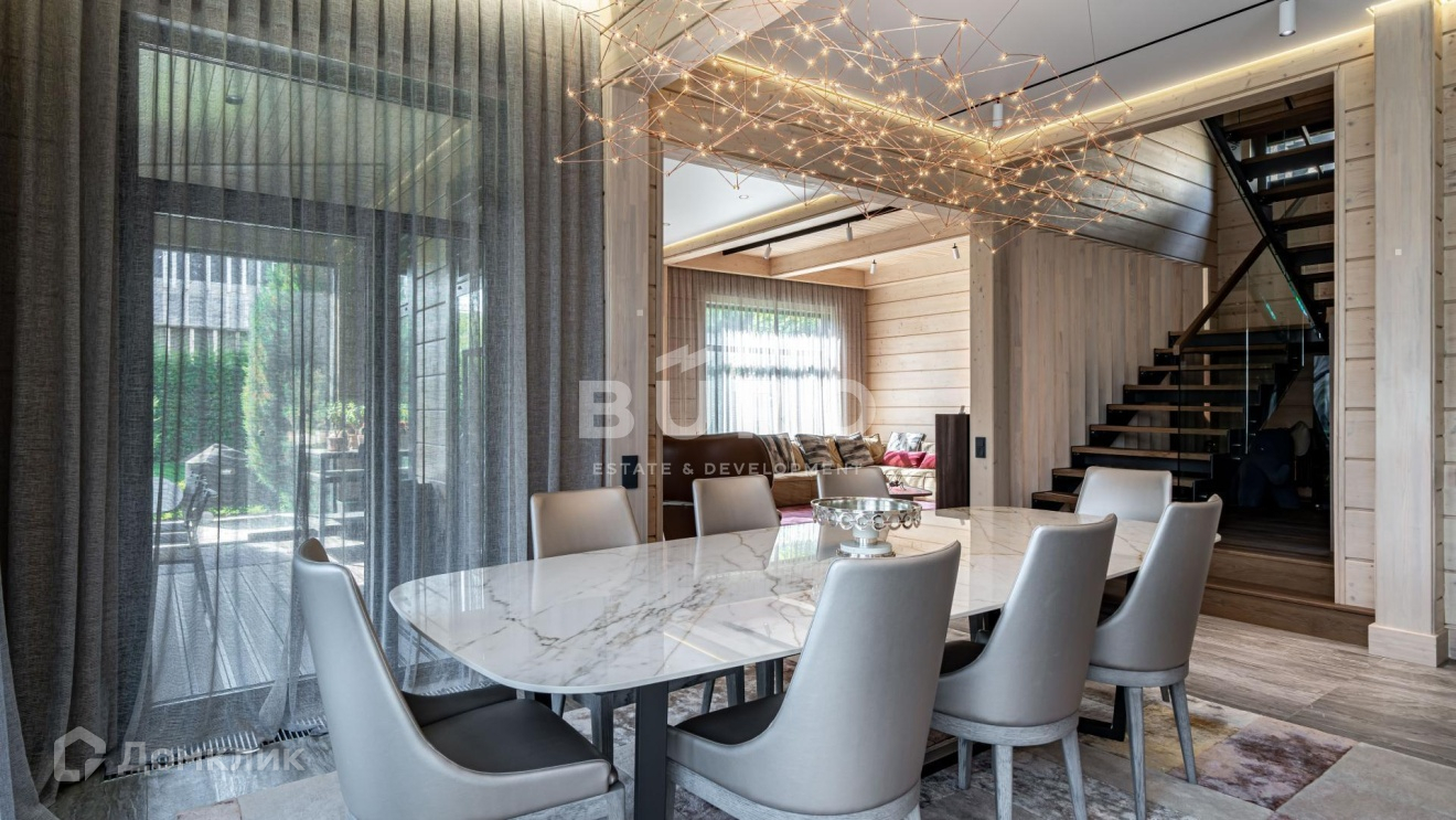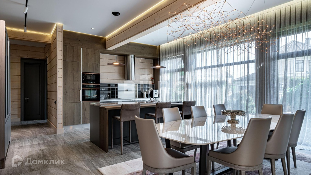 Дом построен по индивидуальному проекту из высококачественного клееного бруса (сечением 210х270 мм.) в 1-м квартале коттеджного поселка, в самом тихом и удаленном от трасс месте. Современный интерьер укомплектован стильной мебелью и освещением от премиальных фирм "B&B Italia", "Bonaldo", "Cattelan Italia", "Axo light" и "Foscarini". Элитная бытовая техника в доме представлена "Kuppersbusch".