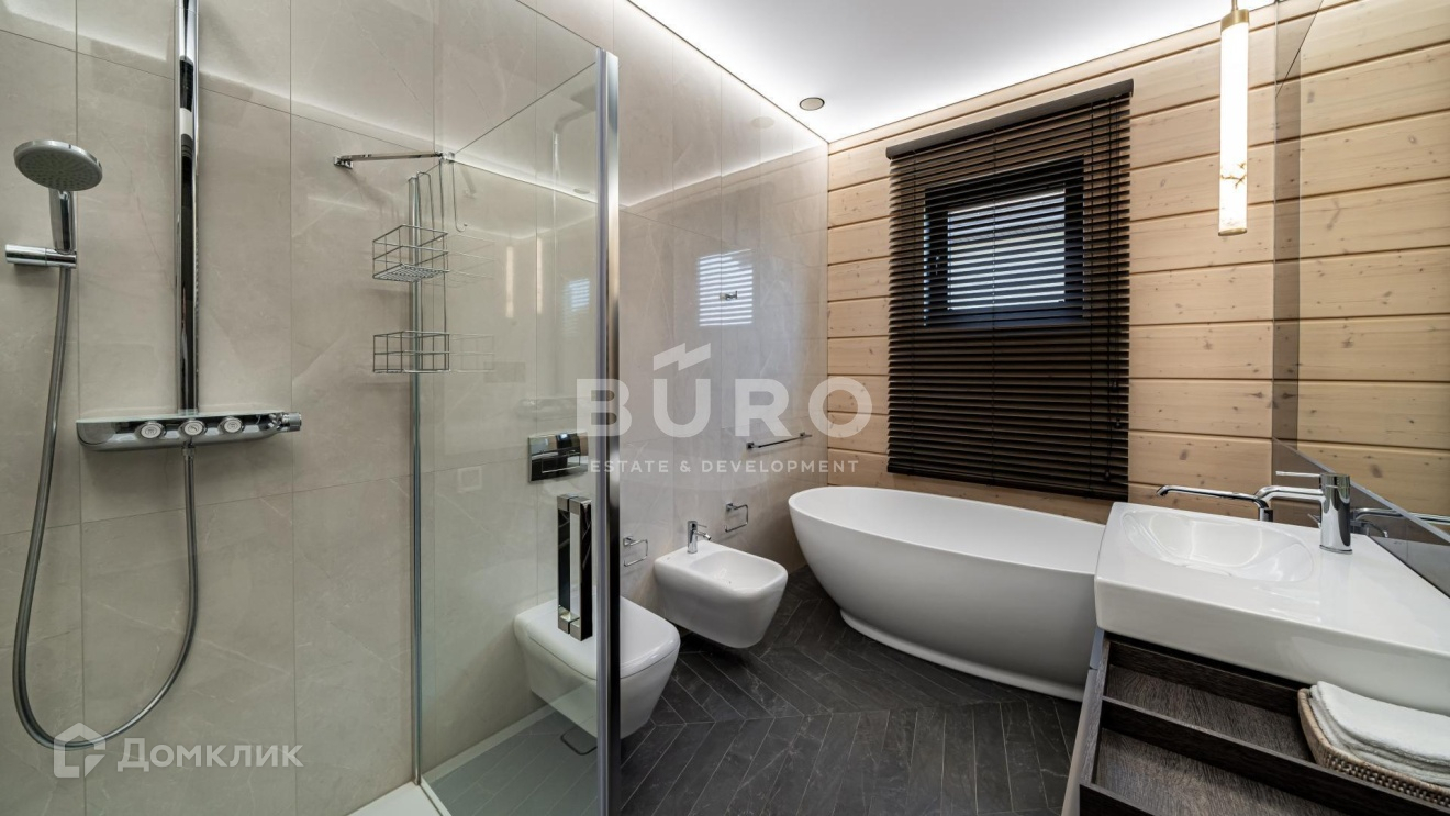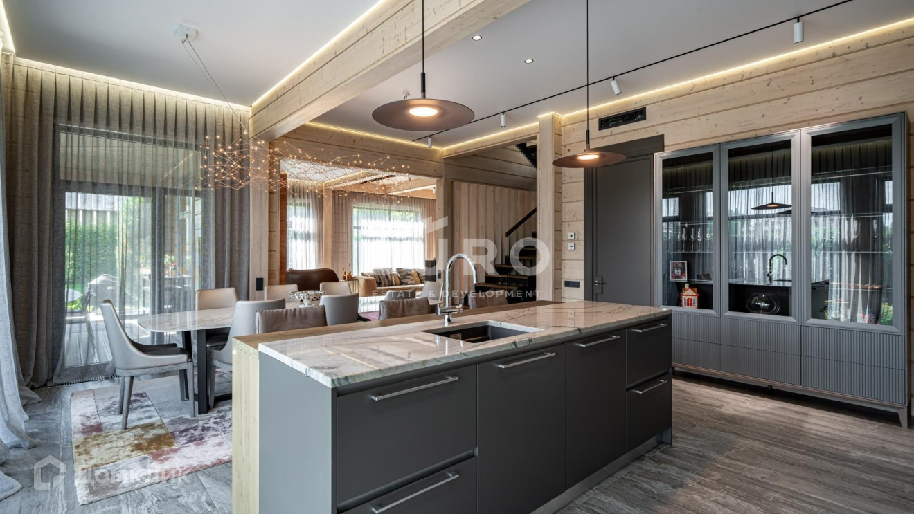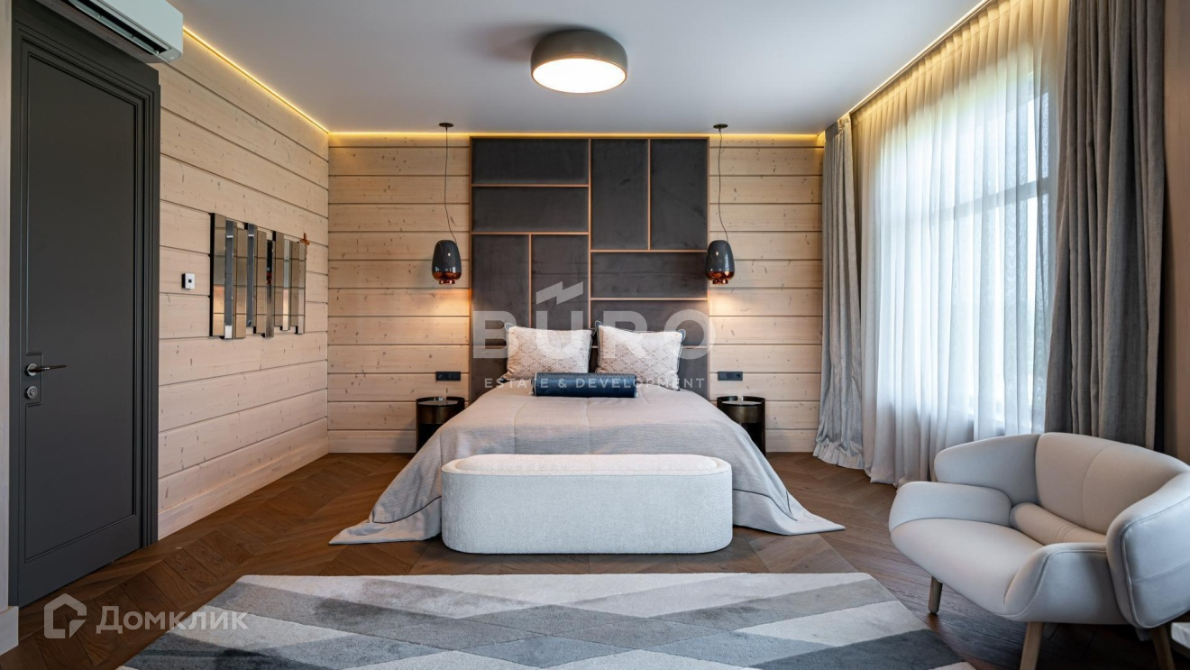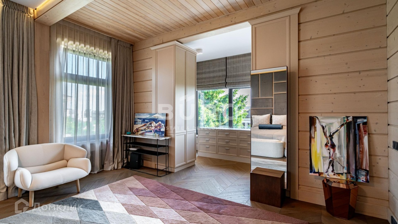Дом построен по индивидуальному проекту из высококачественного клееного бруса (сечением 210х270 мм.) в 1-м квартале коттеджного поселка, в самом тихом и удаленном от трасс месте. Современный интерьер укомплектован стильной мебелью и освещением от премиальных фирм "B&B Italia", "Bonaldo", "Cattelan Italia", "Axo light" и "Foscarini". Элитная бытовая техника в доме представлена "Kuppersbusch".