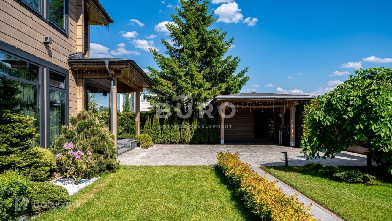 На участке выполнен шикарный ландшафтный дизайн от компании "Imperial Garden". Высажены цветущие и декоративные растения: ели, кедр, ивы, бересклет, можжевельники и туи. Имеется дренаж и автополив. Подсветка деревьев создает романтическую атмосферу в вечернее время. В пешей доступности от участка 3 парковых зоны с озерами, набережной реки Беляна, детскими и спортивными площадками.