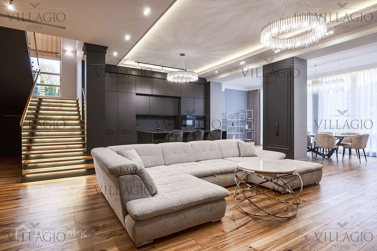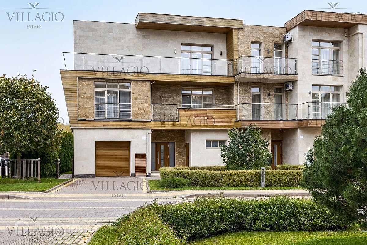 Просторный дом для семьи, где у каждого может быть не просто комната, а целый этаж. Большое преимущество, что этот таунхаус еще и угловой — значит, у вас будет больше собственного пространства и меньше соседей. Это трехэтажный дом с 5 спальнями, 3 ванными и 5 гардеробными комнатами. На первом этаже кухня с обеденной зоной, объединенная с гостиной с камином. Спальни с гардеробными и ванными комнатами расположены на втором и третьих этажах. У двух спален есть выходы на балконы. Во всём доме панорамное остекление, что визуально увеличивает пространство. А ещё в комнатах много света и воздуха в любое время года. Красивые виды на поселок гарантированы! Участок 5 соток со стриженным газоном, живой изгородью и проложенными дорожками. Дом под ключ с дизайнерским ремонтом и мебелью — у каждой комнаты своя цветовая гамма, выверенные детали и уютная атмосфера. Вы будете жить в посёлке «Парк Авеню». Лесной воздух, пение птиц и багровые закаты доступны жителя круглый год. На территории поселка выполнен ландшафтный дизайн в общей концепции. Вы оцените богатую зелень туй, лип, горных сосен, можжевельника, елей и клёнов, стоящих на берегах реки Беляны. На территории есть ресторан и паркинг, спортивные и детские площадки. Пятиминутная прогулка за пределы комплекса — и в вашем распоряжении развивающий центр, детский сад, языковая школа с англоязычными носителями, магазин, салон красоты и химчистка. Всем владельцам земли в «Парк Авеню» доступны любые инфраструктурные объекты коттеджных посёлков Villagio Estate. Например, пляж у озера в ближайшей резиденции «Гринфилд».