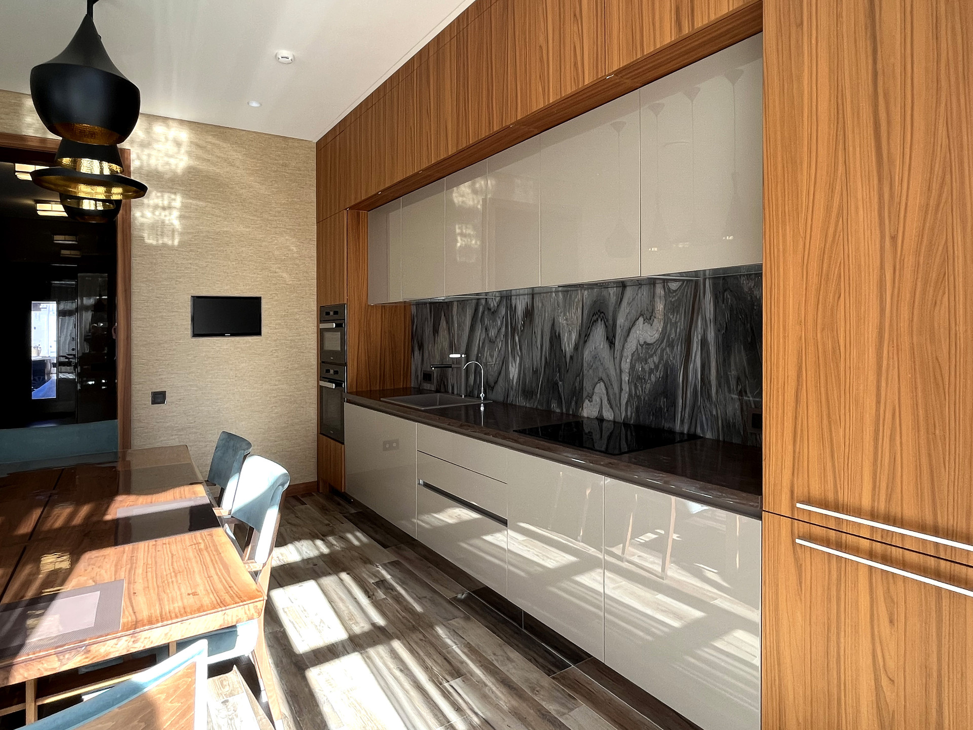 кп "Парк Авеню". Продается таунхаус с люксовым современным дизайнерским ремонтом, стильной мебелью, оборудованный современной техникой от ведущих мировых производителей. Уютный небольшой участком, который прячется от посторонних глаз за высокими туями. Удачная планировка: 1-й этаж: прихожая, гардеробная, санузел, кухня совмещенная с каминным залом и выходом на террасу, постирочная, котельная, техническое помещение, гараж; 2-й этаж: 2 спальни со своими гардеробными, санузлами и выходами на лоджии; 3-й этаж: спальня с санузлом, гардеробной и лоджией, просторное пространство под рабочий кабинет, гостиную, тренажерную. Таунхаус  расположен в одном из самых удачных мест камерного поселка, на территории которого находится роскошный парк и размещены основные объекты инфраструктуры. Поселок находится в 23 км от МКАД в направлении Новорижского шоссе.