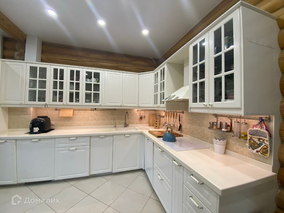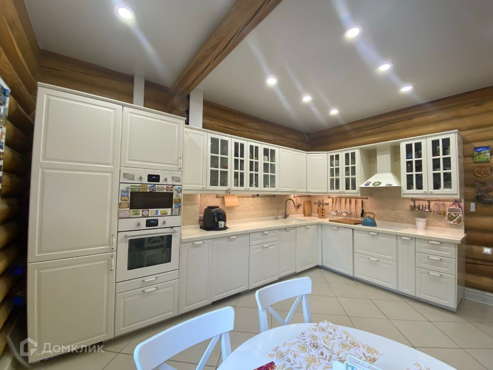 Площадь дома 220 кв.м. на монолитной фундаментной плите. Бревно- лиственница, кровля - мягкая черепица. Наличники стеклопакетов, двери, ступени ( наружные и внутри дома) - дуб. Потолок во всем доме- высококачественный тканевый натяжной.