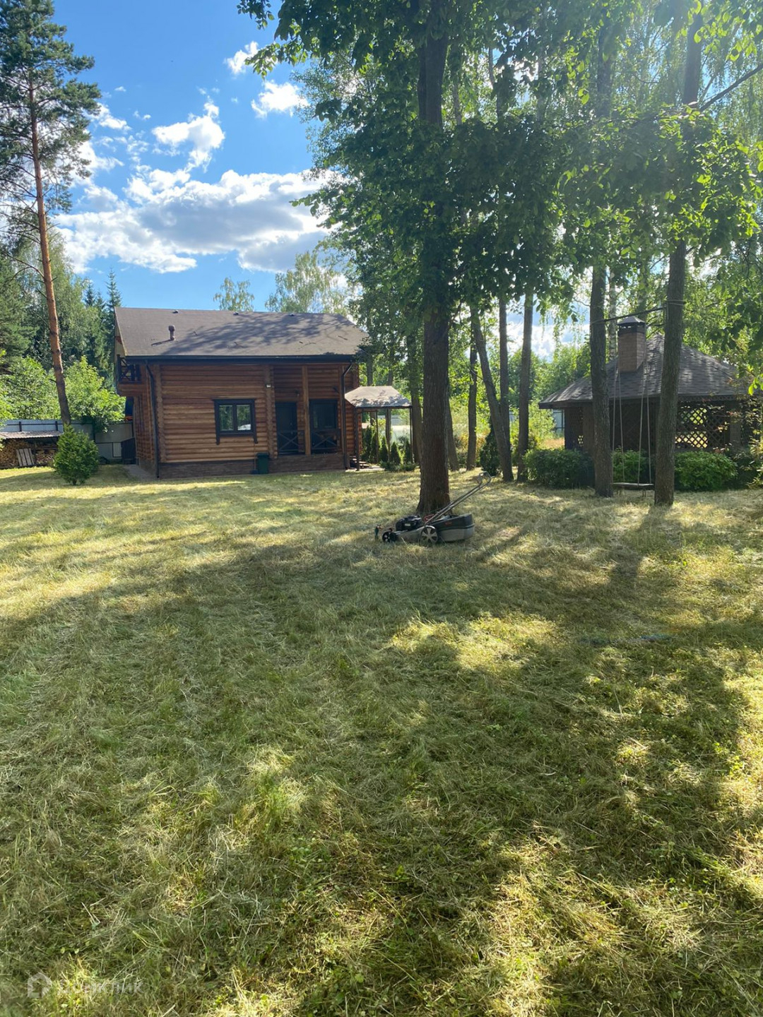 Основной вход оснащен откатными воротами с электроприводом и 2 дополнительных выхода в лес и на озеро. Просторная площадка для авто вместительностью 3-4 шт.