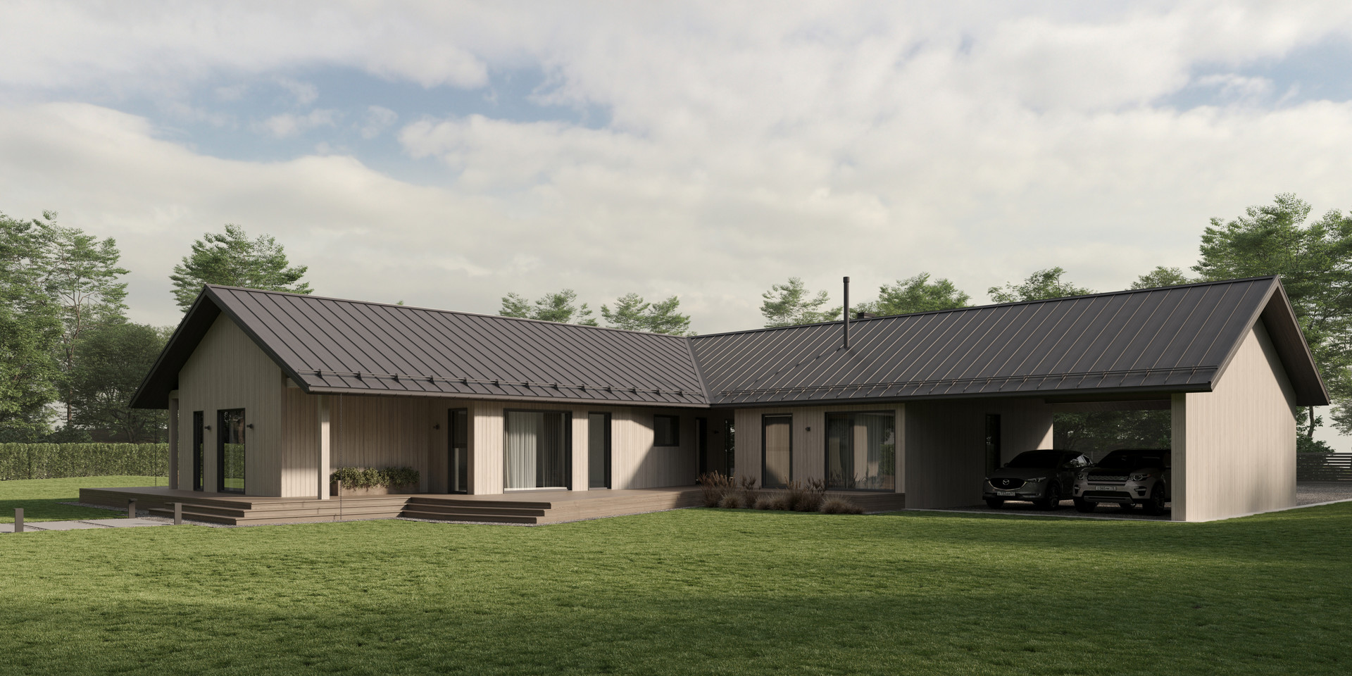 дом в стиле Барнхаус (139 м2) на земельном участке (15 соток) - участок ровный и сухой, в живописном месте, в окружении лесов, рядом с природным озером, ИЖС для постоянного, круглогодичного проживания.