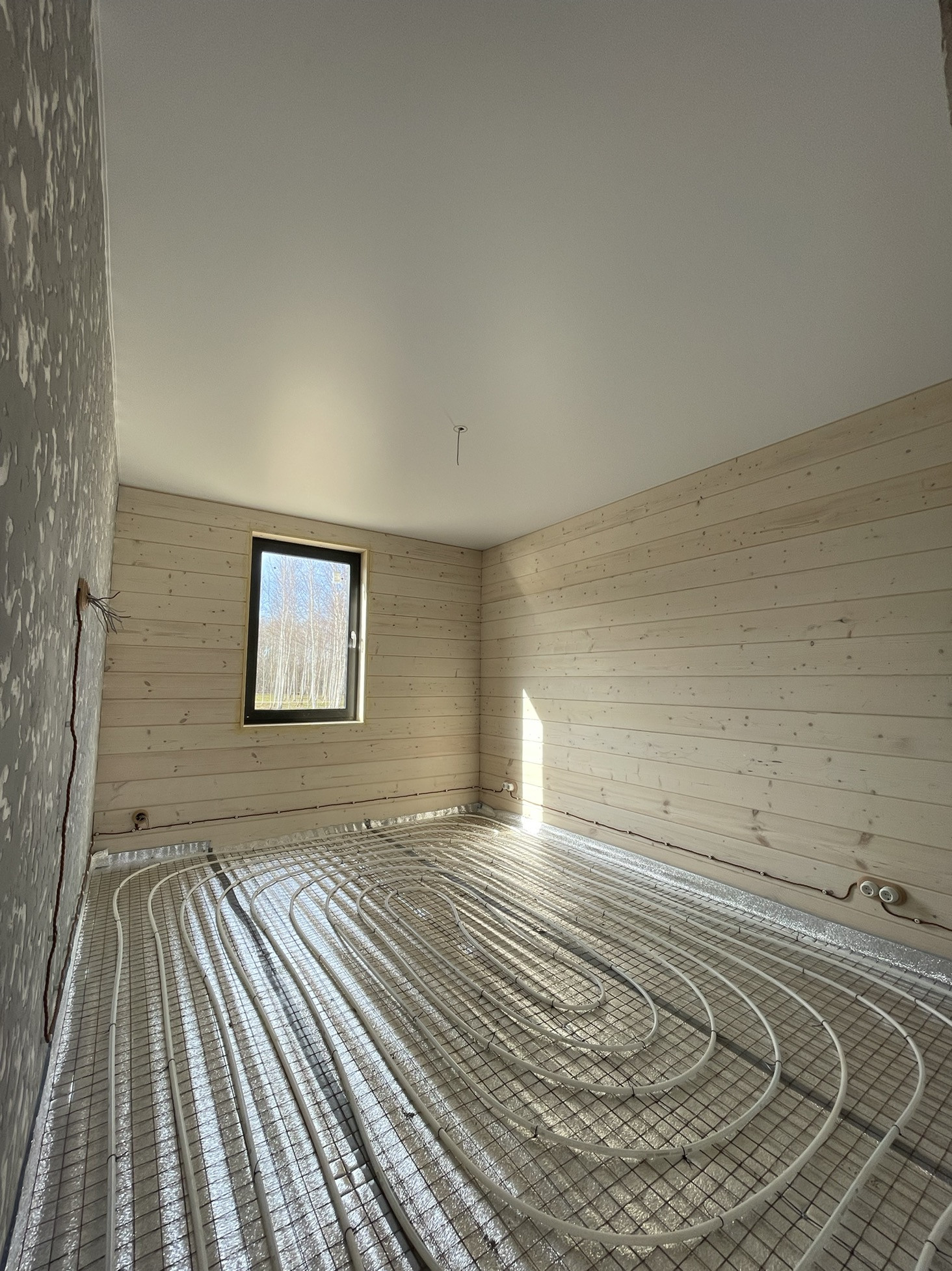 тип постройки - каркас (размер доски 195 мм), кровля - Клик Фальц (Grand Line), панорамное остекление, внутренняя отделка - карельская имитация бруса, утеплитель Hotrock 200 мм, дом оснащен по периметру теплым полом от компании Upanor (Швейцария), ретро-проводка с керамическими розетками и выключателями, электрика фирмы ABB.