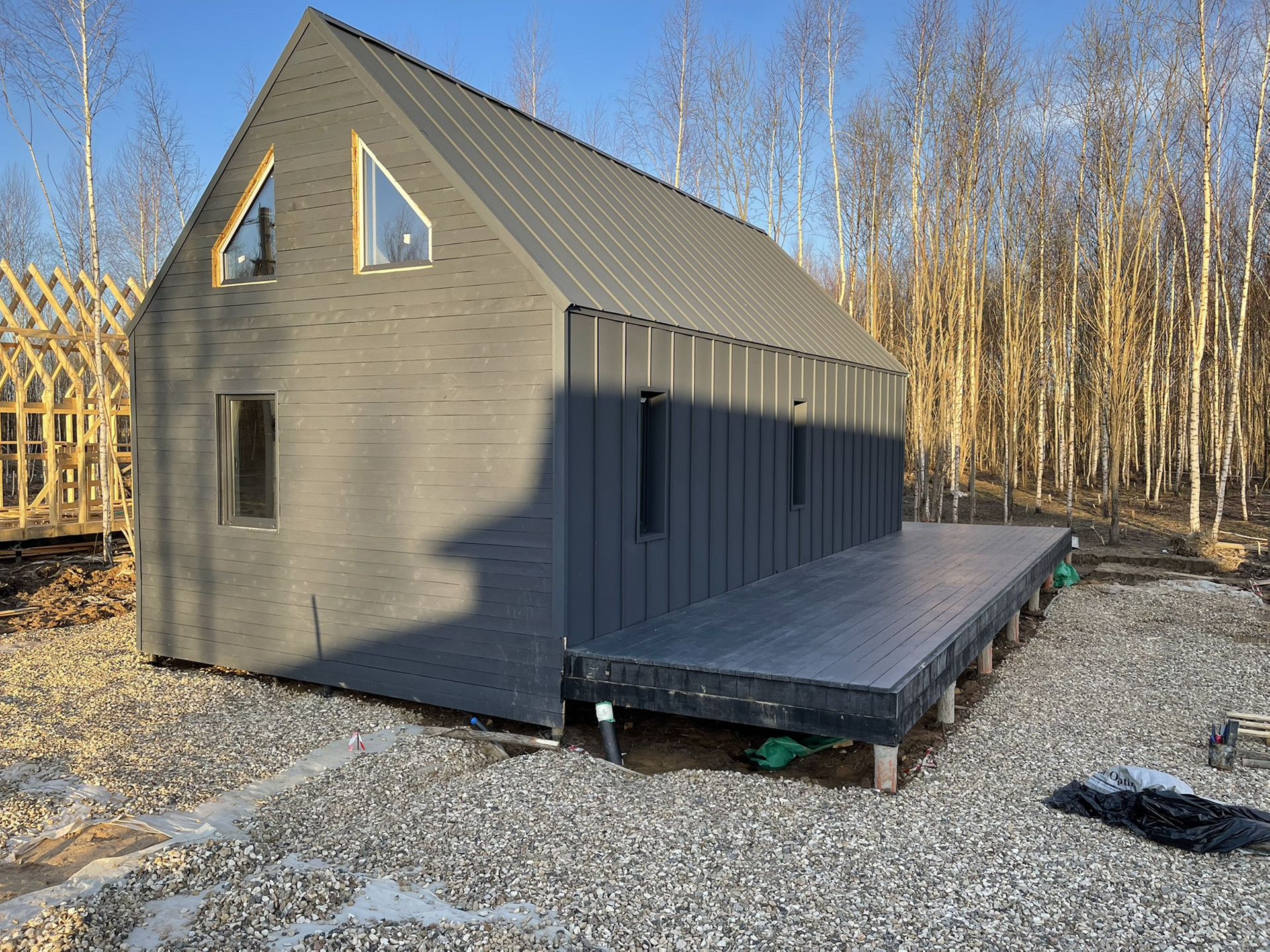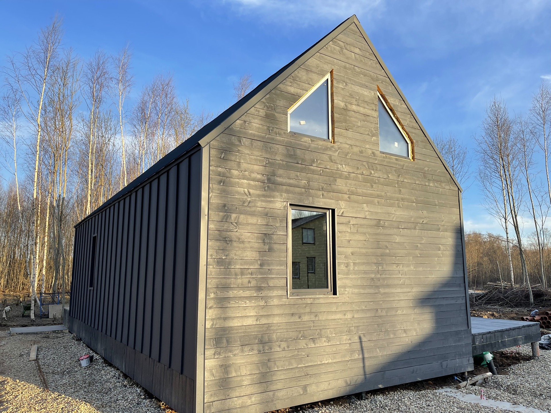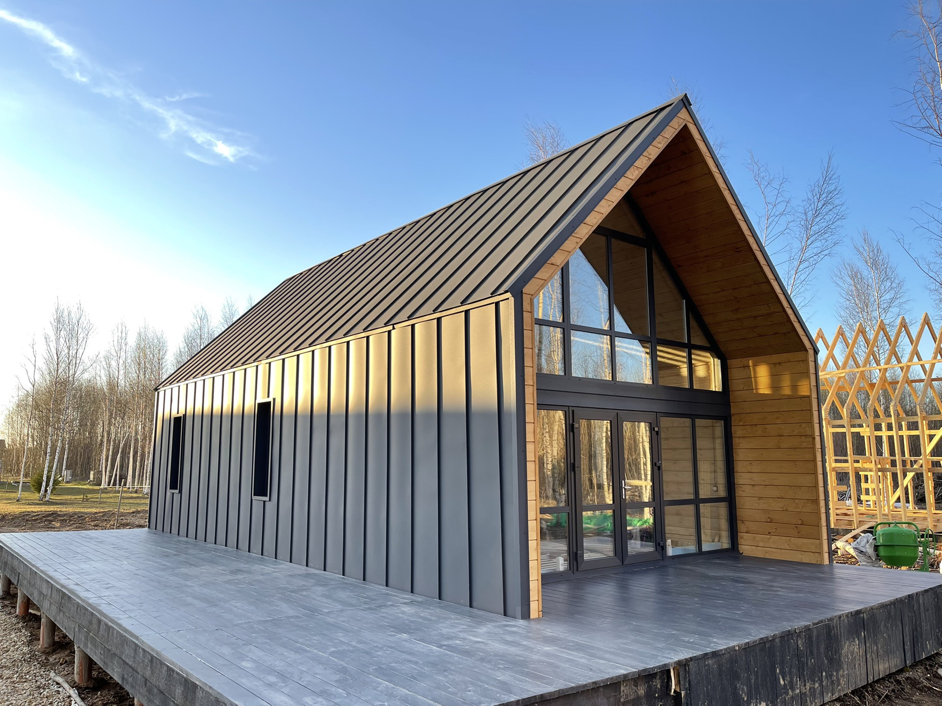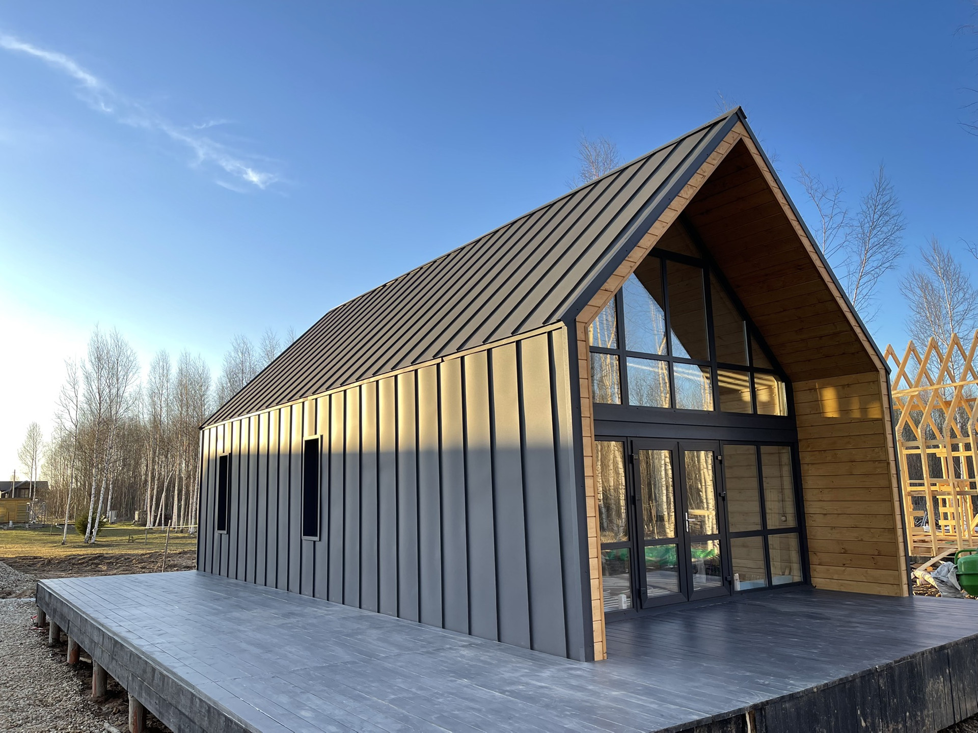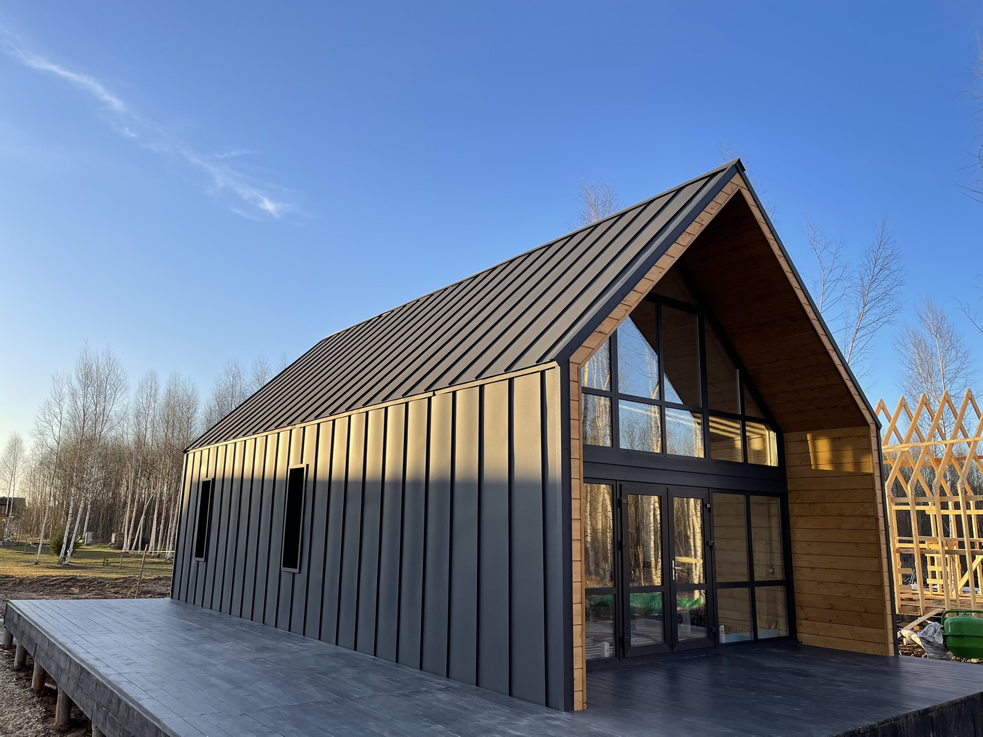 дом в стиле Барнхаус (139 м2) на земельном участке (15 соток) - участок ровный и сухой, в живописном месте, в окружении лесов, рядом с природным озером, ИЖС для постоянного, круглогодичного проживания.