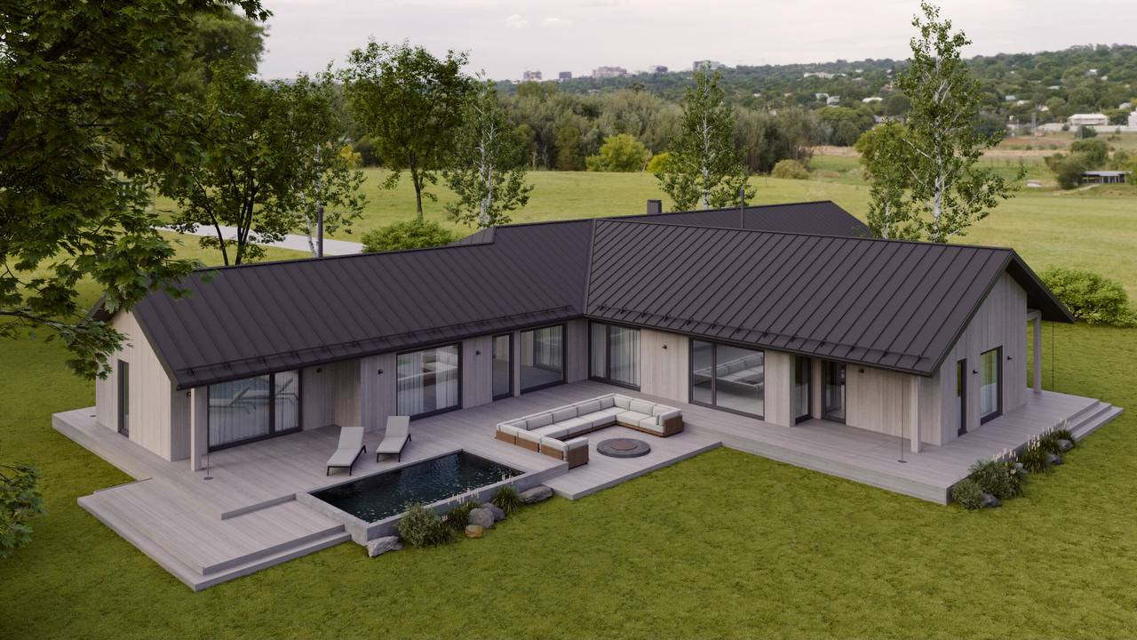 дом в стиле Барнхаус (334 м2) на земельном участке (20 соток) - участок ровный и сухой, в живописном месте, в окружении лесов, рядом с природным озером, ИЖС для постоянного, круглогодичного проживания.