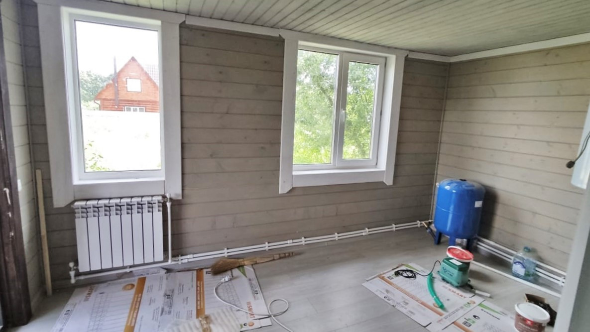 В доме 3 комнаты, плюс кухня-гостиная - 26 кв.м, на первом этаже оборудован сан.узел, но есть возможность оборудовать на втором.