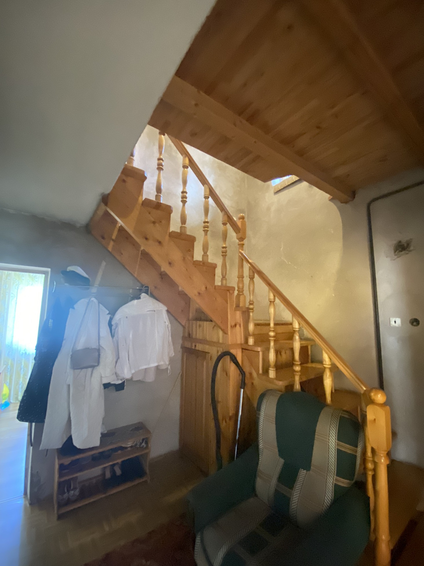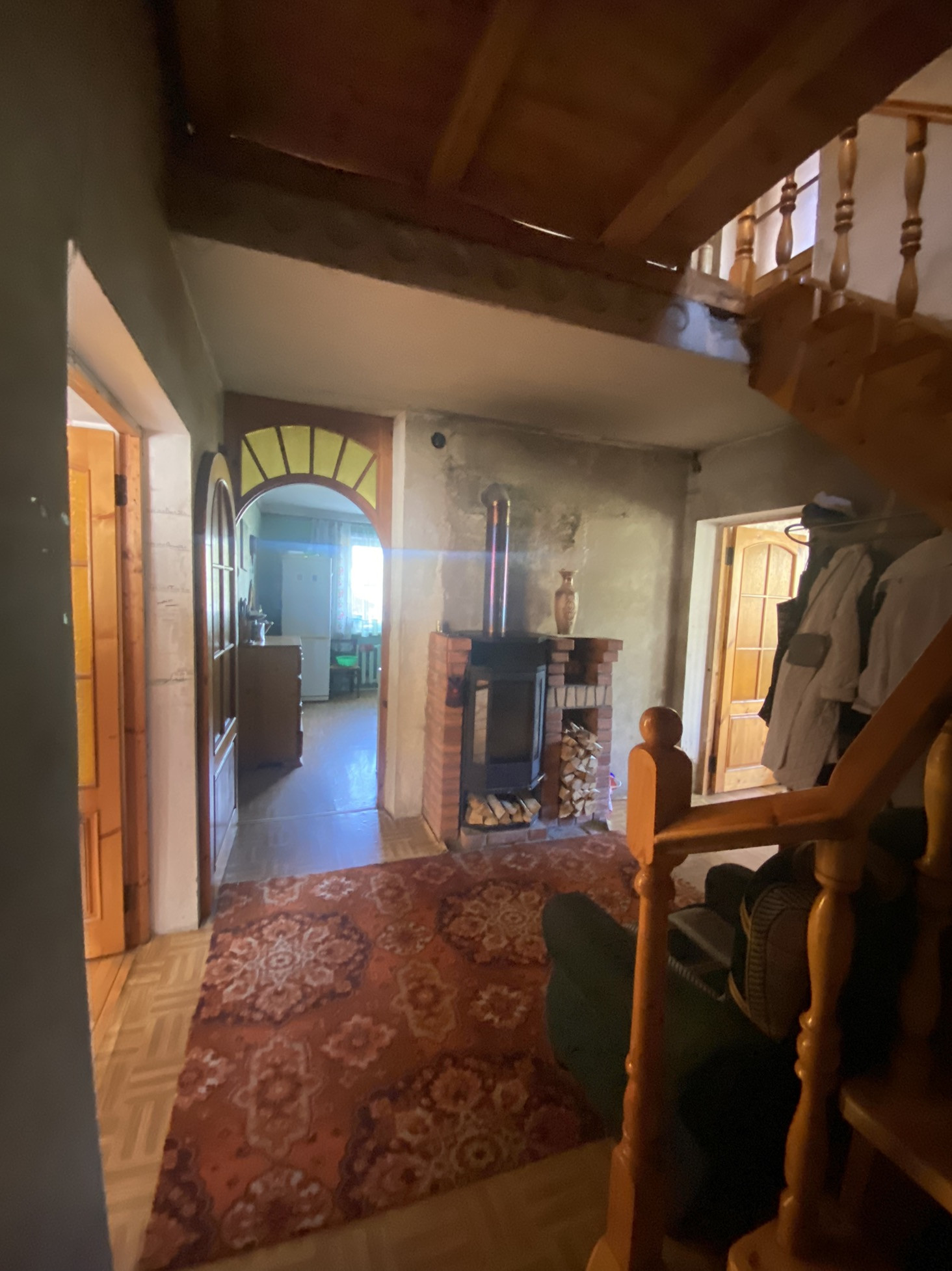 На втором этаже: расположены 3 комнаты (12.8, 13,4 и 9 кв.м), все изолированы. Комната 22.7 кв.м без ремонта с выходом на 3 этаж под крышей.