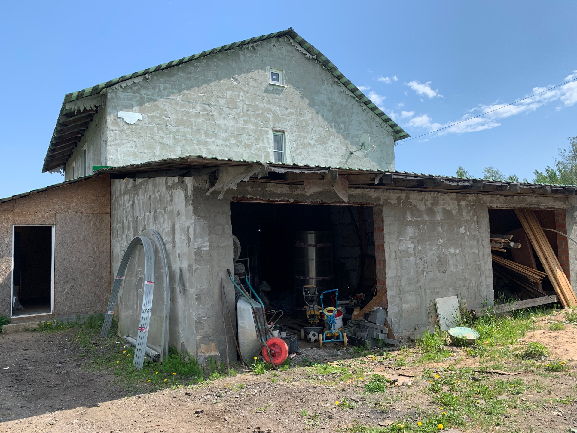 К дому пристроены два гаража (необходимо установить ворота).