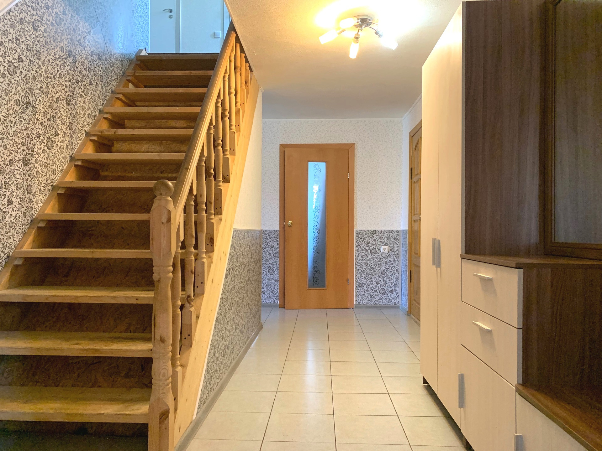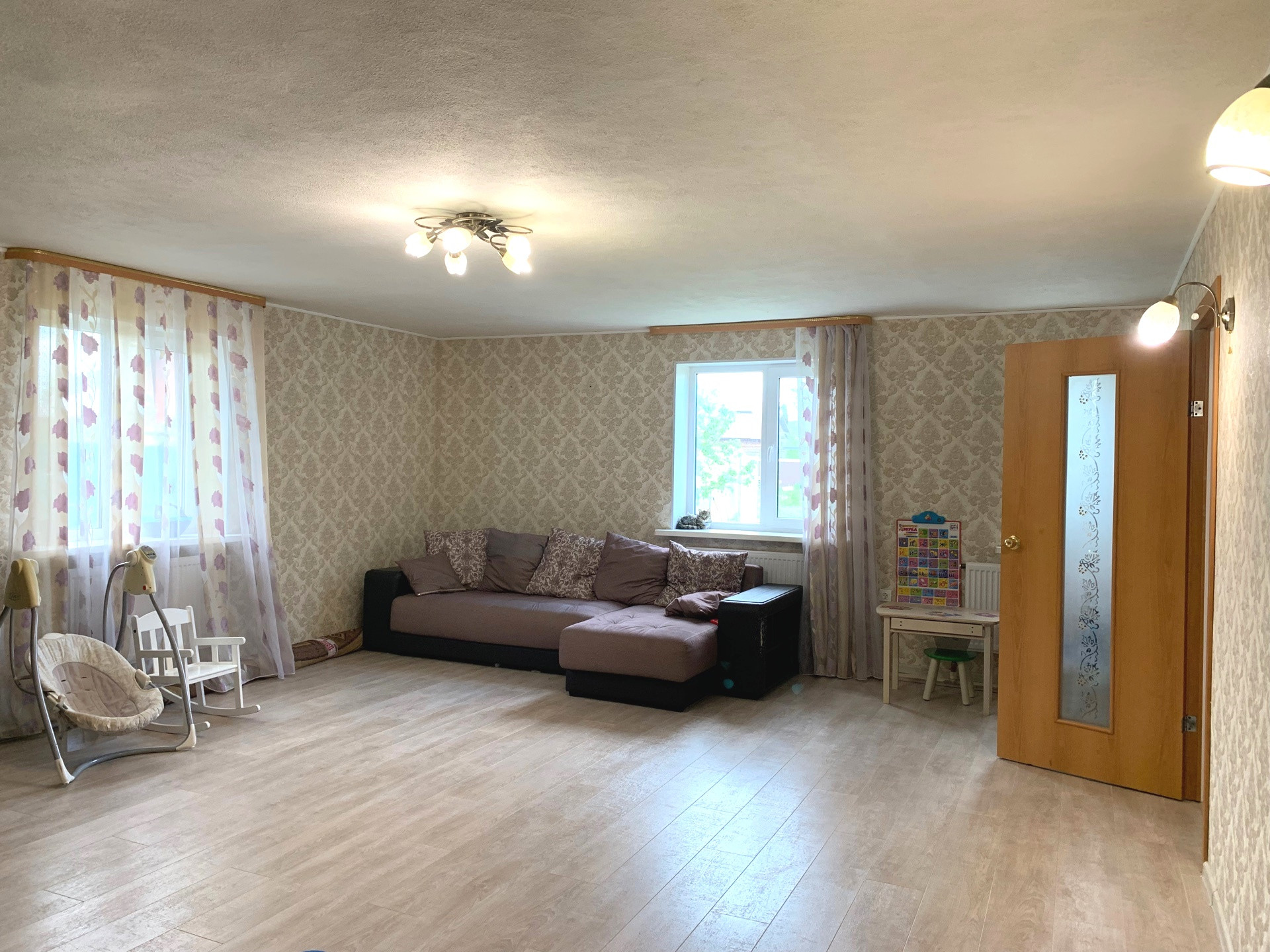 Выполнен хороший ремонт: установлены стеклопакеты, теплые полы на первом этаже + частично на втором, полы – ламинат + плитка, с/у – плитка, стены выровнены.