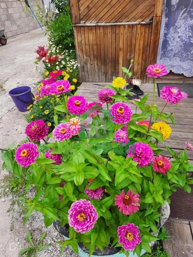 Земля на участке разработана, есть огород и зона отдыха. Зона огорода выделена, имеется две теплицы, организована система полива. На участке растет много плодовый кустарников и деревьев (огромная елка, 2 кедра, вишня, ирга, яблоня, смородина, малина, ежевика и.т.д ). Шикарный цветник с гортензиями, розами, барбарисом.