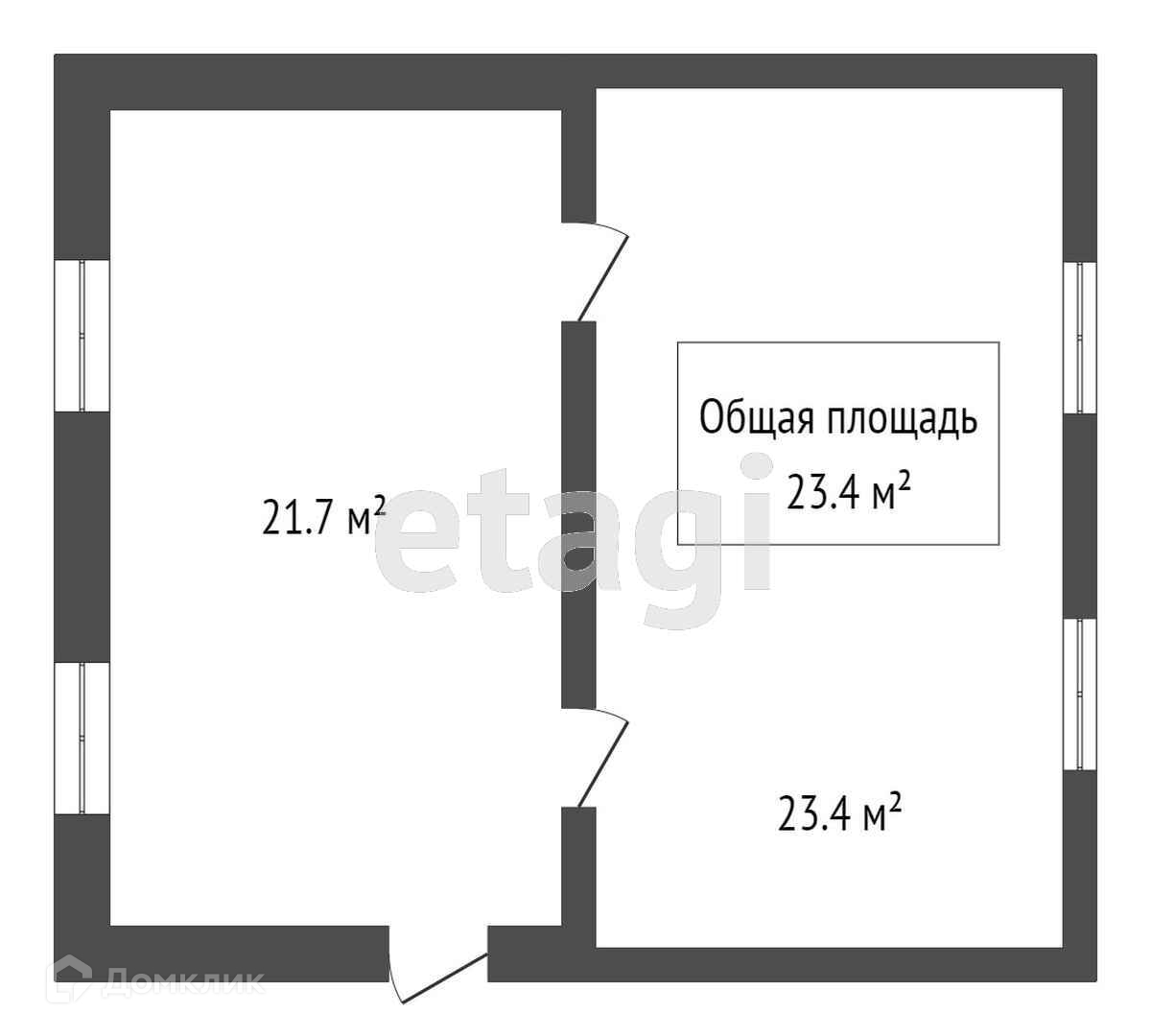 Общая площадь 23.4 м2