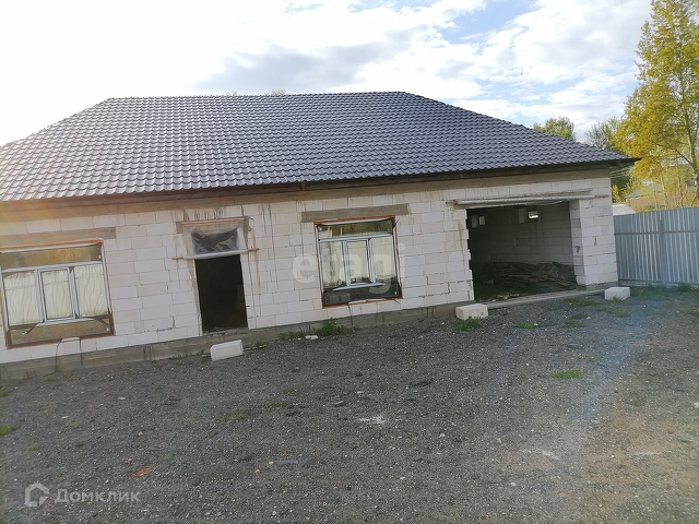 Жилой дом: выполнен из пеноблока, фундамент ленточный. Площадь 183 кв. м. Крыша вальма из металлочерепицы. Помещения в доме: 4 жилых комнаты, кухня, с\у, гараж. Установлены окна ПВХ в круг, имеются двери для всех помещений.