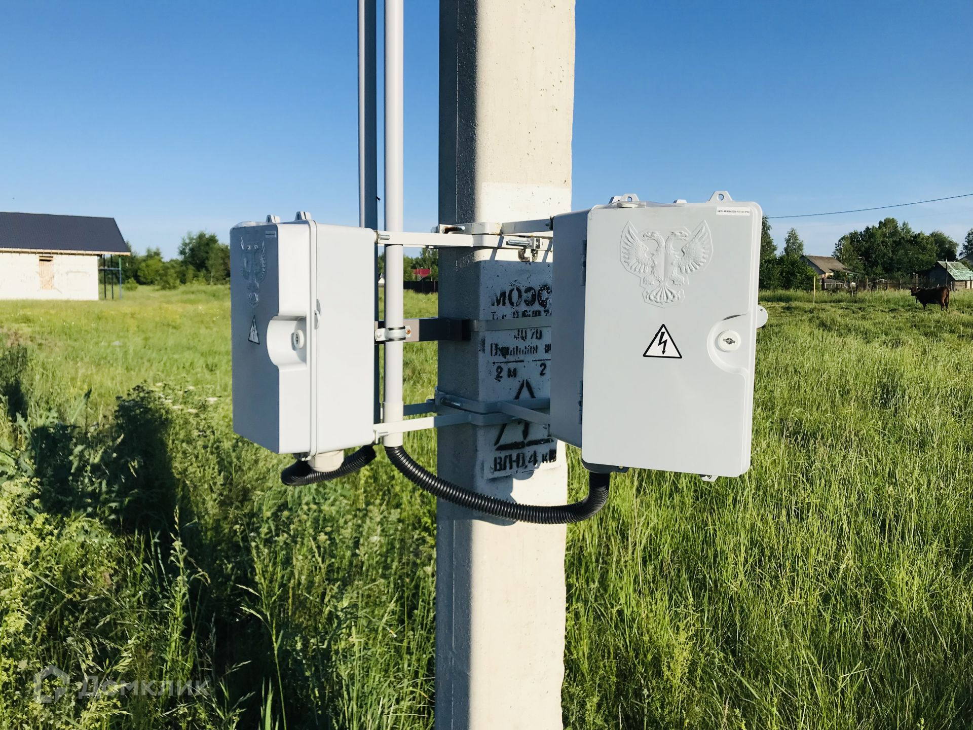 Свет проходит по границе, установлен столб и счетчик. Деревня газифицирована, газ проходит по границе участка.