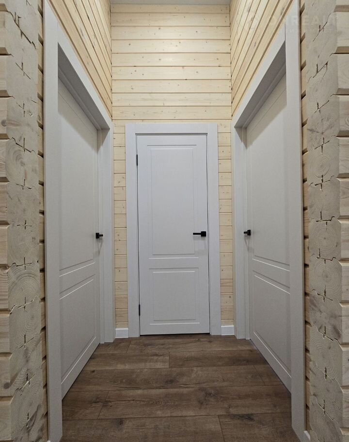 В доме смонтированы все межкомнатные двери и плинтус в единой цветовой гамме с внутренней отделкой.