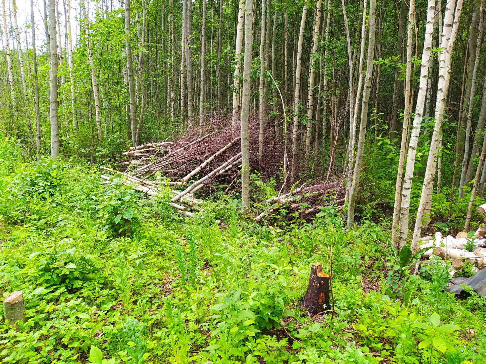 Участки почти полностью выпилены, поэтому на участке много дров. Не выкорчеван. Газ можно провести после постройки дома. Соседи добрые. Вокруг много новых домов.