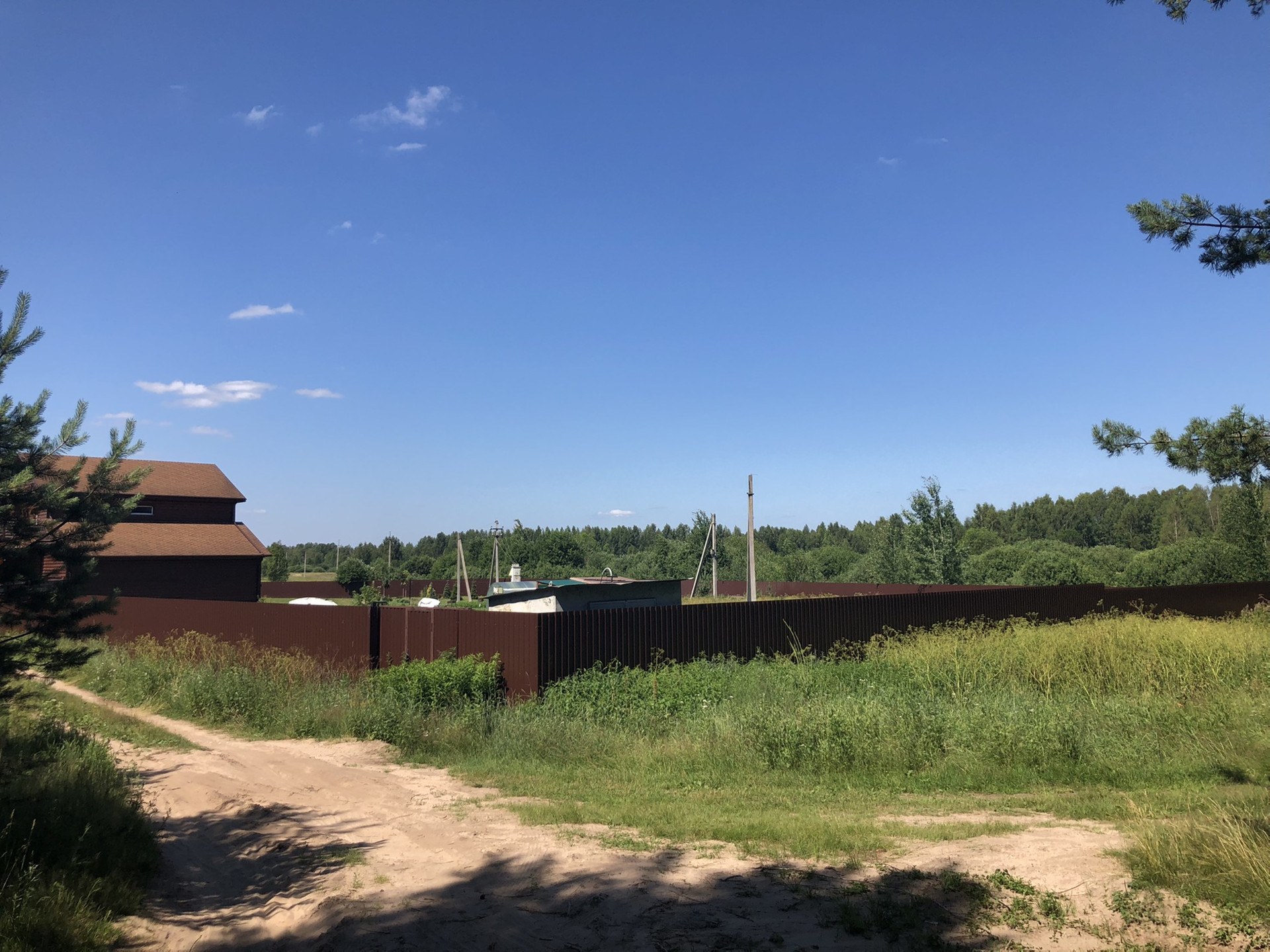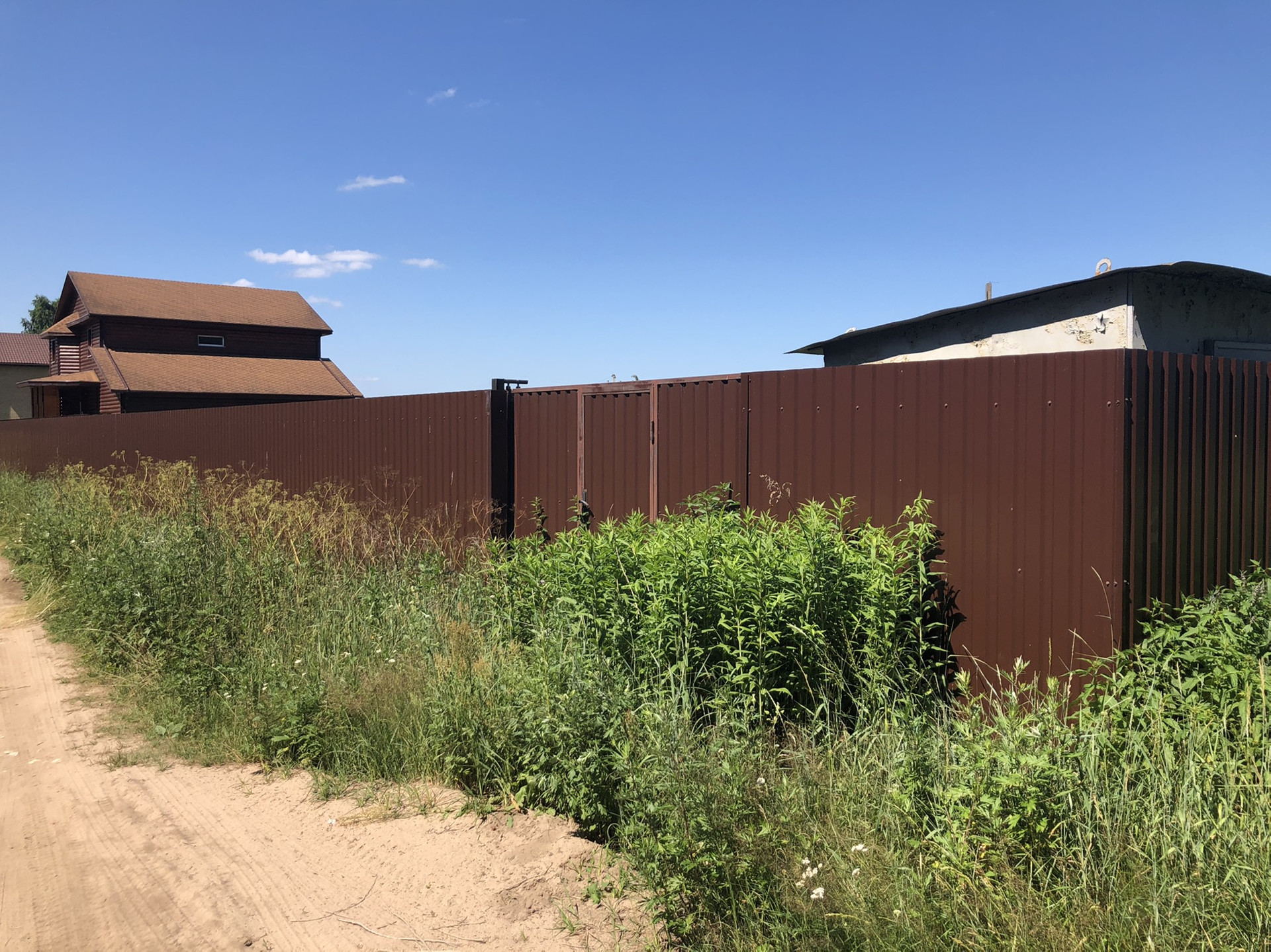 Огорожен по периметру забором,установлены откатные ворота