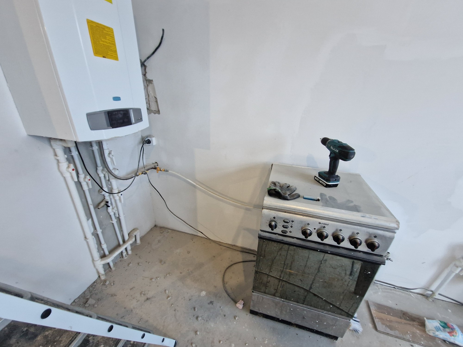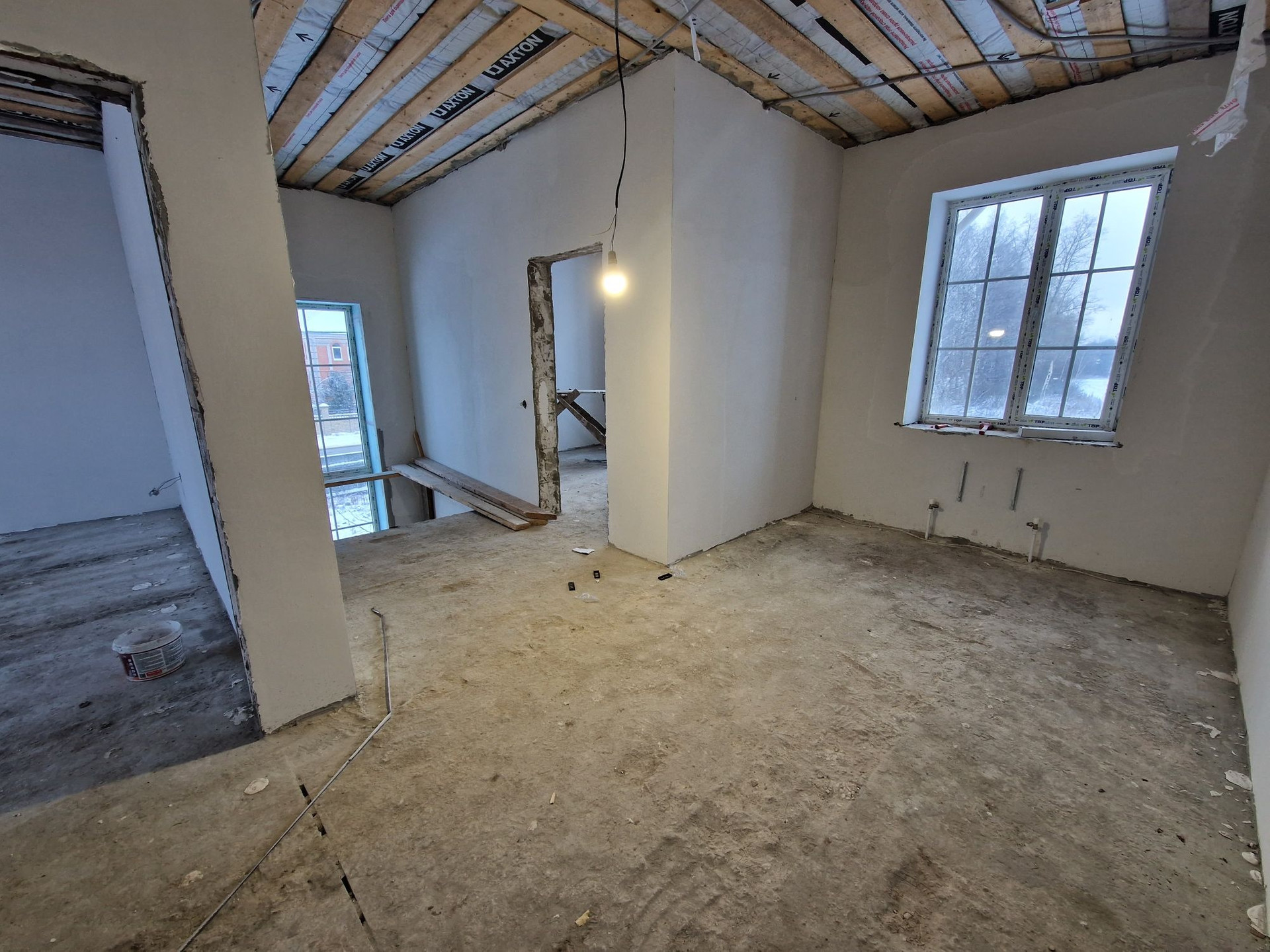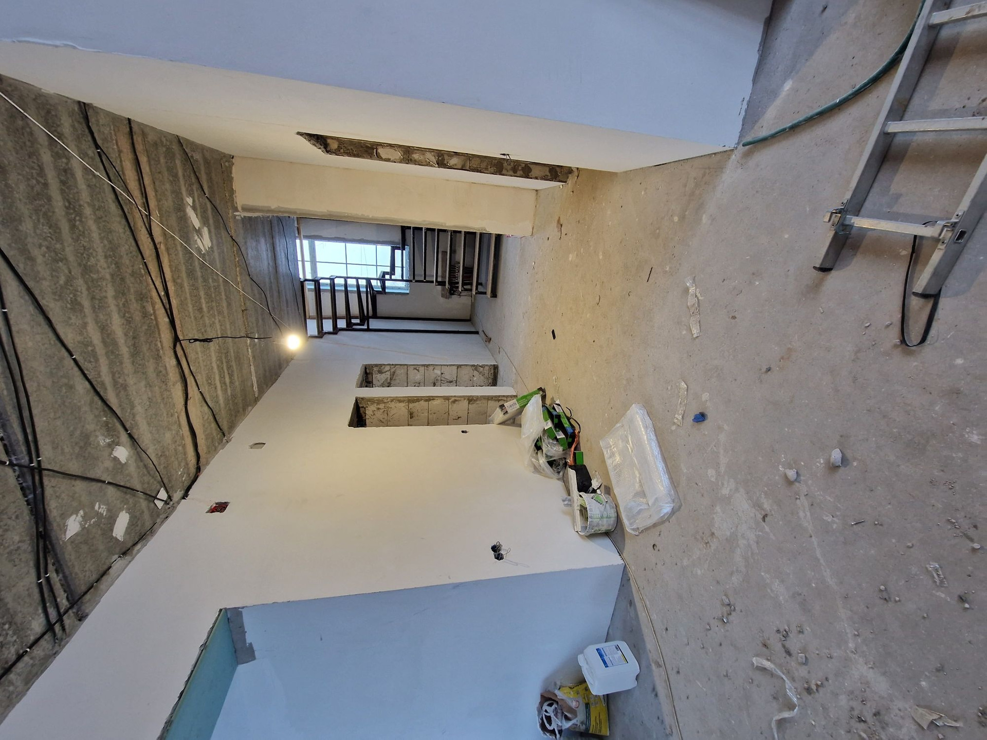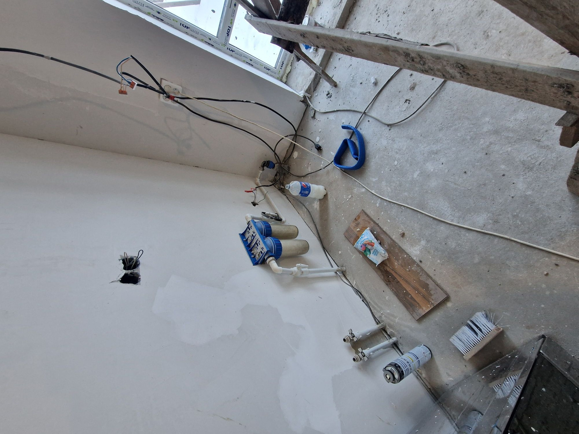тёплые полы , штукатурка. Уже начали пот чистовой оделки стены шпаклёвка