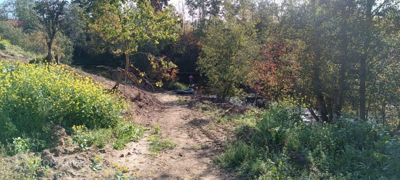 Но самая изюминка в том, что ровный прямоугольной формы участок расположен у пологого,  склона большой протоки, в которой водится и рыба   которая  втекает в р. Луга.
