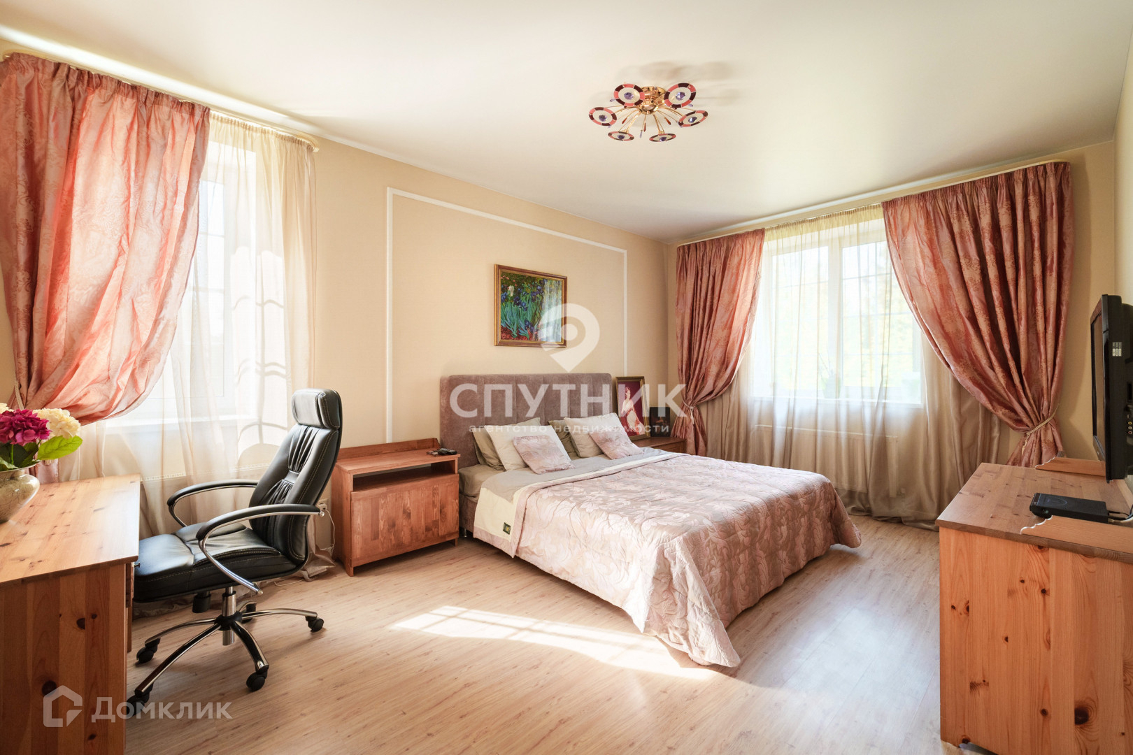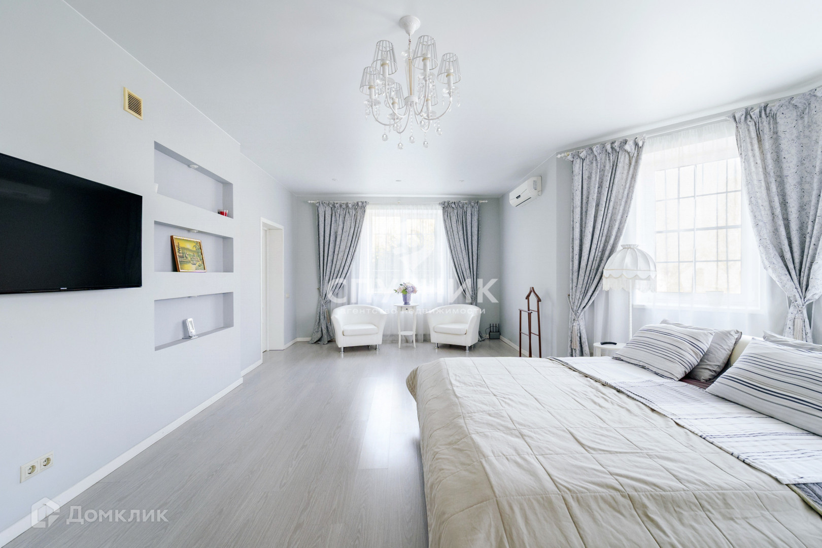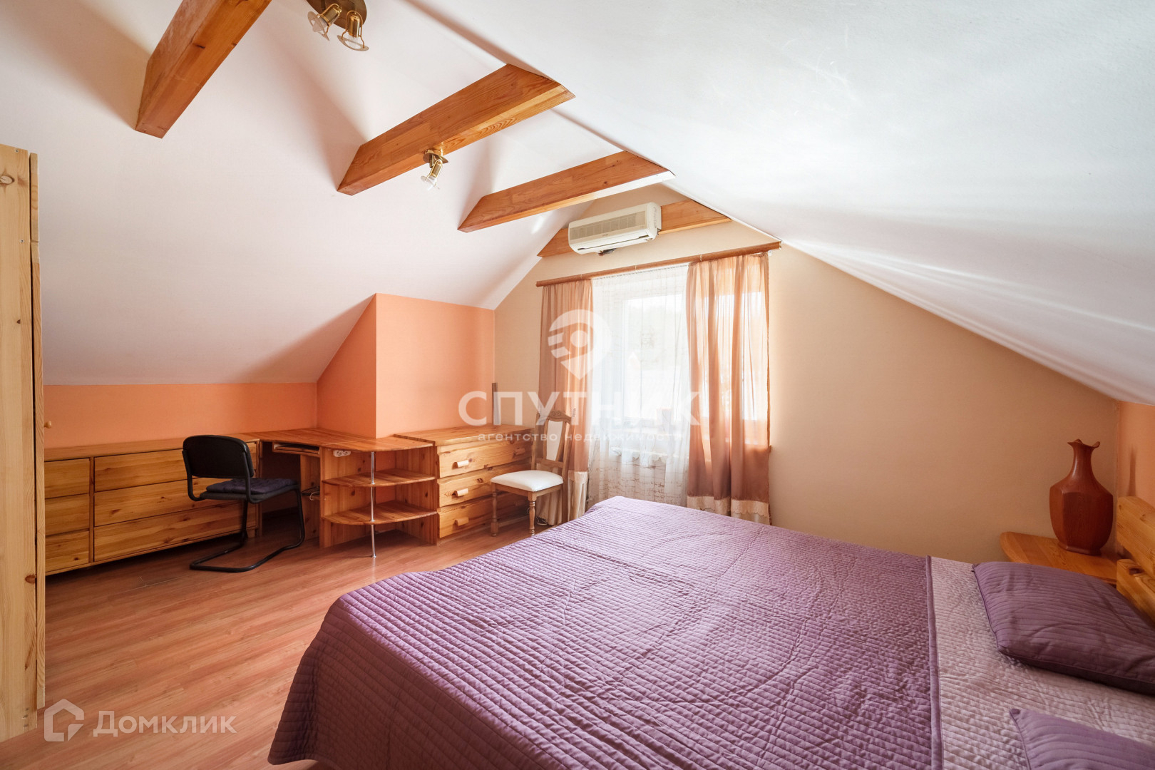 2 этаж: просторный холл, две мастер-спальни с личными сан. узлами, гардеробная комната с окном (возможно переделать в спальню). Установлены кондиционеры.