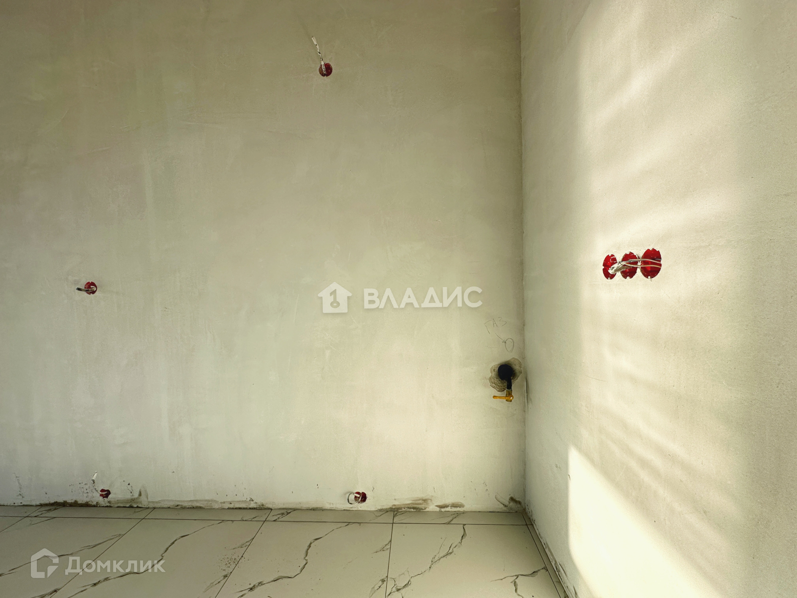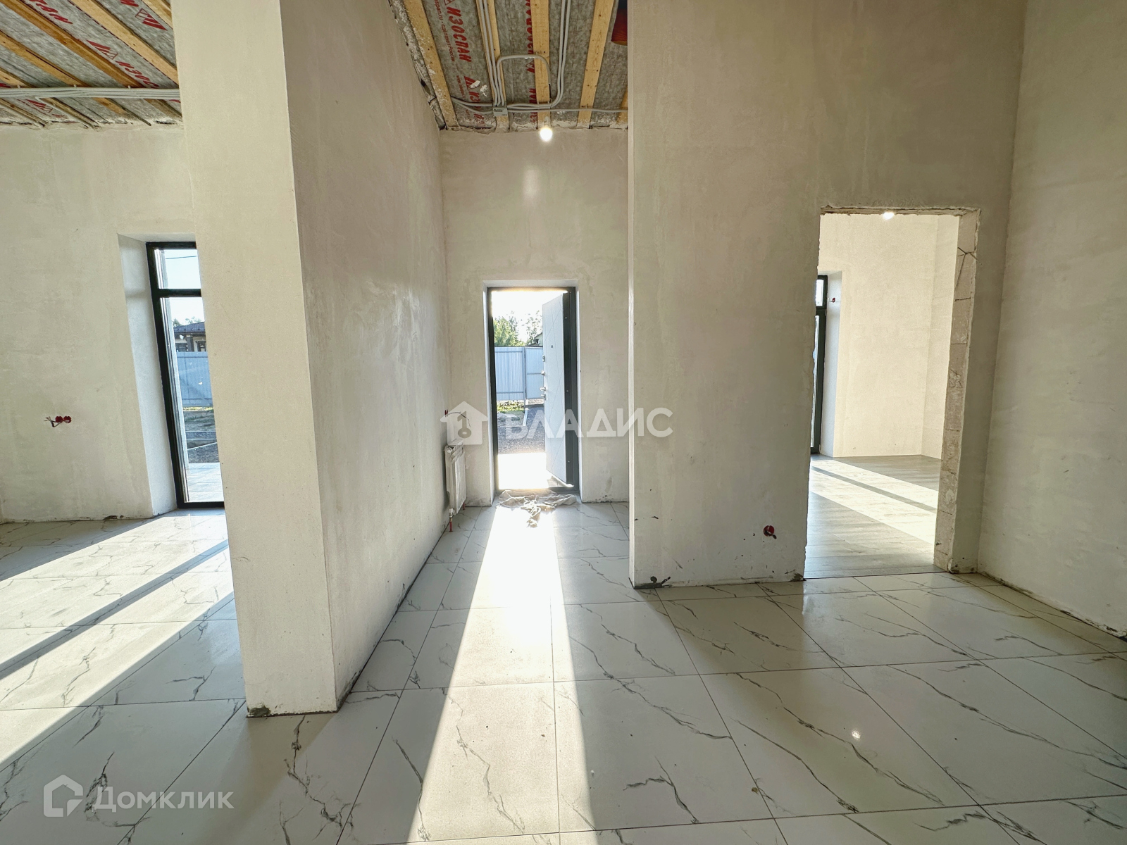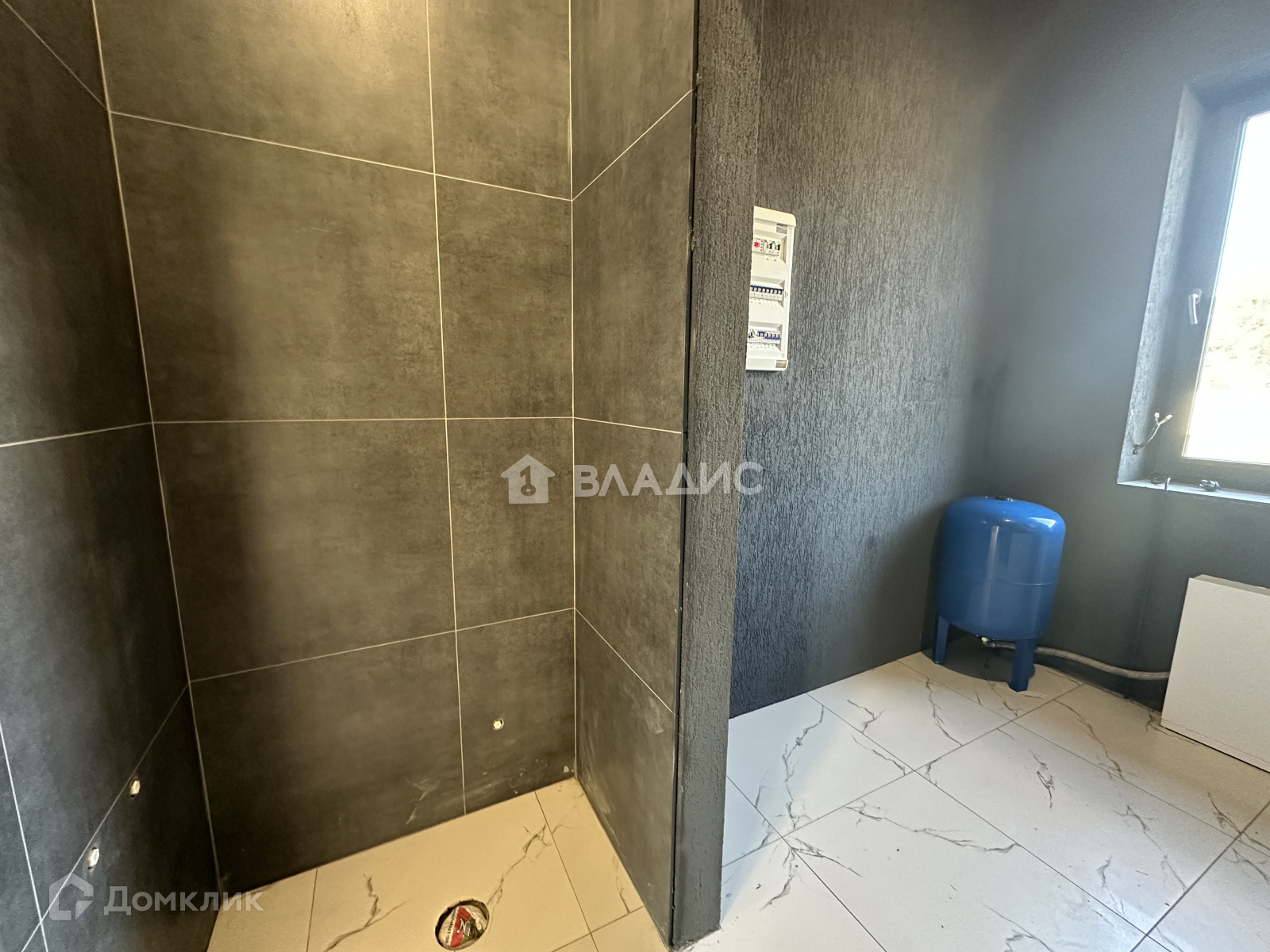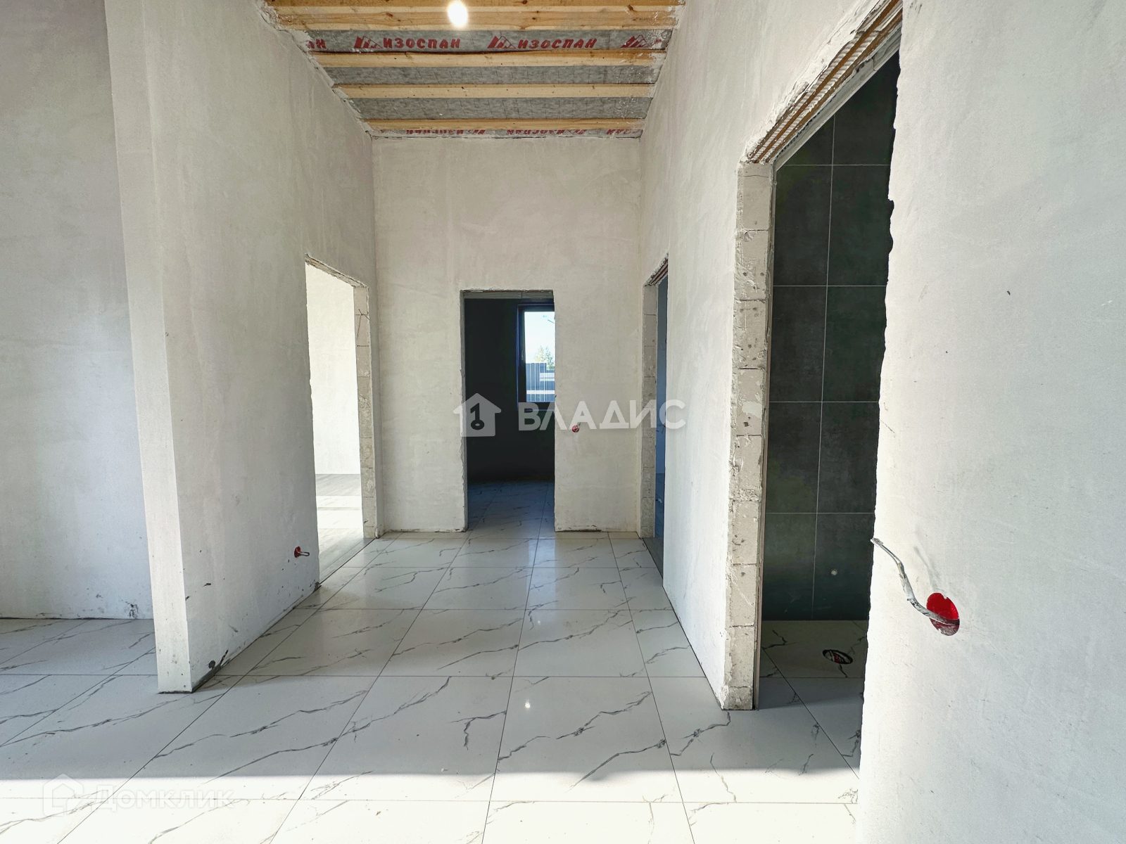 На полу плитка керамогранит (санузлы, коридор, котельная, кухня/гостиная)