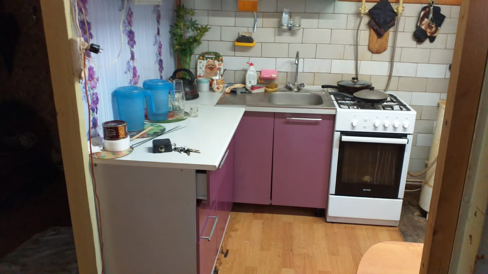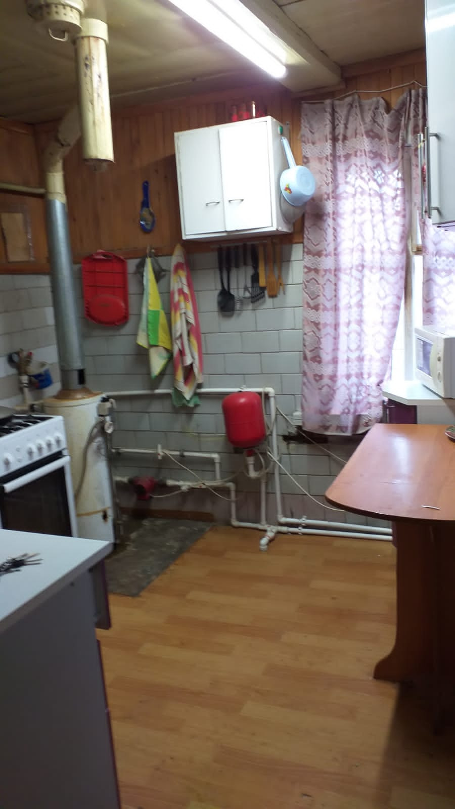 В доме, кухня, 3 комнаты, санузел. Отопление - газовый котел.