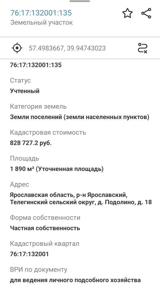 Земельный участок, кадастровый номер 76:17:132001:135